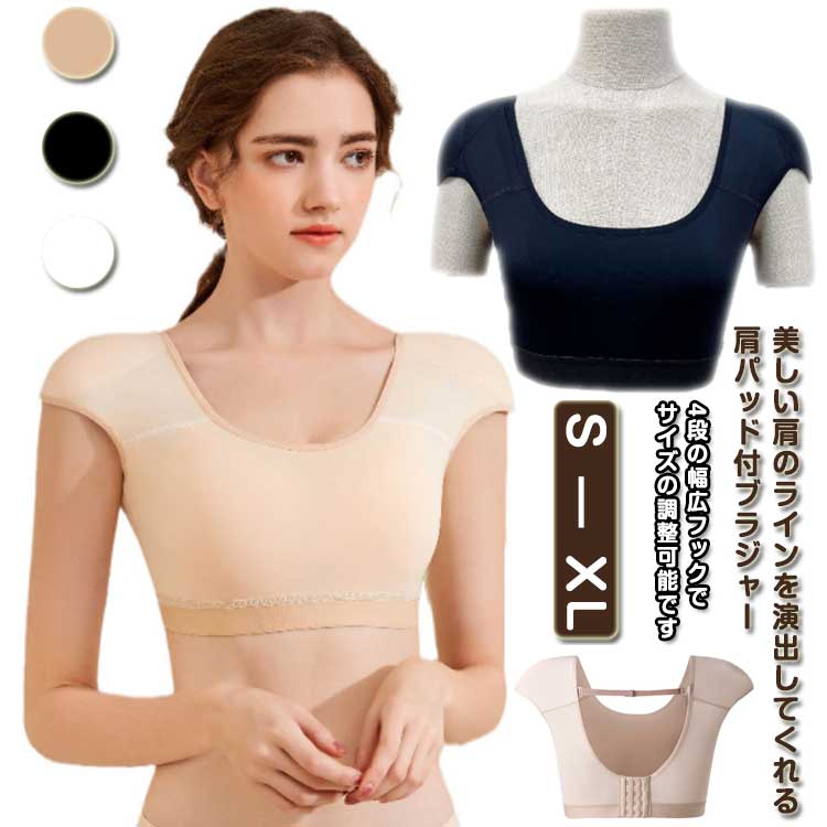 美しい肩のラインを演出してくれる肩パッド付ブラジャー。ショルダーラインを綺麗に見せてくれる肩パット付きのブラジャーです。肩のラインをシャープに出したい方、なで肩や肩幅が狭いとお悩みの方にもおススメ!締め付け感もなく、ほどよくフィットする着心地です。4段の幅広フックでサイズの調整可能です。ソフトによく伸びてくれるので着用感バツグン!女性らしいフレンチスリーブデザインも魅力的です。 サイズ S M L XL サイズについての説明 サイズ:S(70A/B/C) M(75A/B/C) L(80A/B/C) XL(85A/B/C) 素材 ナイロン ポリエステル 色 肌色 ブラック ホワイト 備考 ●サイズ詳細等の測り方はスタッフ間で統一、徹底はしておりますが、実寸は商品によって若干の誤差(1cm〜3cm )がある場合がございますので、予めご了承ください。 ●商品の色は、撮影時の光や、お客様のモニターの色具合などにより、実際の商品と異なる場合がございます。あらかじめ、ご了承ください。 ●製品によっては、生地の特性上、洗濯時に縮む場合がございますので洗濯時はご注意下さいませ。 ▼色味の強い製品によっては他の衣類などに色移りする場合もございますので、速やかに(脱水、乾燥等)するようにお願いいたします。 ▼生地によっては摩擦や汗、雨などで濡れた時は、他の製品に移染する恐れがございますので、着用の際はご注意下さい。 ▼生地の特性上、やや匂いが強く感じられるものもございます。数日のご使用や陰干しなどで気になる匂いはほとんど感じられなくなります。