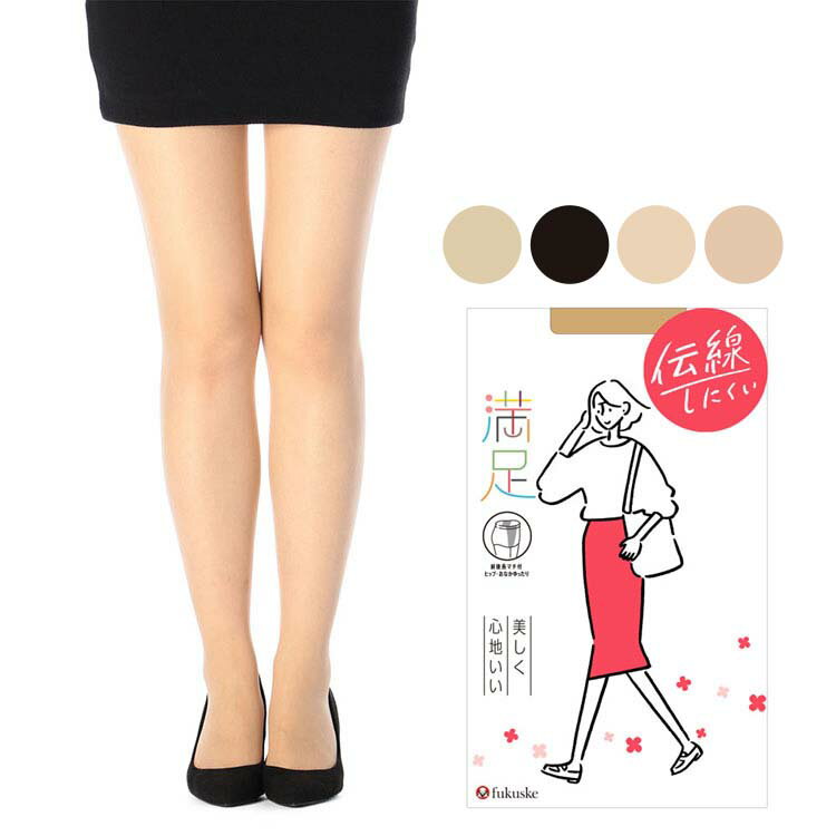 福助が誇る定番ブランド「満足」は圧倒的なはき心地がさらに進化しました。なめらかなはき心地を実現するため、満足のためだけに開発された独自のカバリング糸を使用。さらにウエストに食い込みにくい幅広ソフトウエストと腰回りをしっかり包みこむヒップサポート立体設計でお尻のホールド感もアップしたパンティストッキングです。※商品画像は、お客様のお使いのモニターや部屋の環境等により、実際の商品と色味が多少異なる場合がございます。満足 美しく心地いい 後長マチ付 ヒップゆったり 伝線しにくいノンラン設計するするはけて、締め付けにくい。心地いいのに、脚キレイ。だから、こんなに心地いい♪1.パンティ部後長マチ付。2.なめらかで、伝線しにくい。【ご使用の際の注意点】・この商品は全く伝線しないものではありません。強く引っぱられますと、伝線する場合もございます。お取り扱いにはご注意ください。・この商品は伸縮性に富みフィット性に優れた糸を使用しております。台紙の折目やレッグの一部に濃淡のムラが発生する場合がありますが、着用上は問題ございません。・パッケージのイラスト及び写真は着用イメージです。実際の商品とは異なる場合があります。●素材ナイロン・ポリウレタン●サイズ【JM-L】身長:150-165cm、ヒップ:95-113cm(検索用:ストッキング 福助 満足 伝線しにくい パンティストッキング ゆったりサイズ つま先補強 抗菌防臭 静電防止 立体設計 段階快適設計 ブルベ イエベ fukusuke 4527837026882 4527837026875 4527837026844 4527837026837)最強翌日配送対象商品に関するご案内 最強翌日配送対象商品・対象地域に該当する場合は最強翌日配送マークがご注文カゴ近くに表示されます。 最強翌日配送可能なお支払方法は【クレジットカード、代金引換、全額ポイント支払い】のみとなります。 下記の場合は最強翌日配送対象外となります。 ・15点以上ご購入いただいた場合 ・時間指定がある場合 ・ご注文時備考欄にご記入がある場合 ・決済処理にお時間を頂戴する場合 ・郵便番号や住所に誤りがある場合 ・最強翌日配送対象外の商品とご一緒にご注文いただいた場合 ・お届け先住所文字数が40文字以上の場合