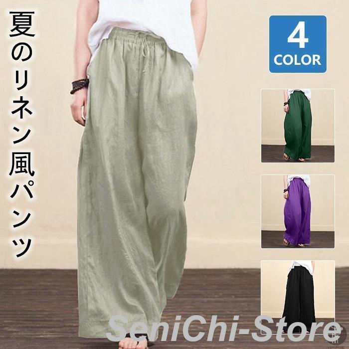 ワイドパンツ レディース バギーパンツ パンツ ワイド ガウチョ レディース 大人 リネン風 ボトムス ロングパンツ ルームウェア ウエストゴム レディース ゆったり 春 夏【カラー】グレー、グリーン、ブラック、パープル【サイズ】L、XL、2XL、3XL、4XL、5XL【素 材】綿混紡※採寸方法違いより、多少の誤差がございますので、ご了承ください。※お客様のご覧になられますパソコン機器及びモニタ、また室内、室外での撮影により実際の商品素材の色と相違する場合もありますのでご了承下さい。※本製品は生産過程におきまして、生地を織る際の糸の継ぎ目や多少のほつれが生じることがありまが、品質上は問題ありません。また、生地の織りに他繊維が混紡している場合もございます。※記載の詳細サイズは、メジャーによる実寸の誤差、商品の素材(生地)による誤差が生じる場合があります。