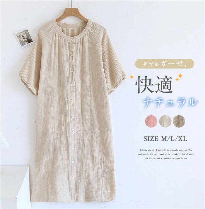 素材 コットン カラー ピンク、ライトカーキ、オフホワイト(写真参照) ※モニターの発色の具合により実際の商品と色が異なる場合がございます。 サイズ(cm) M: 着丈95 バスト96 肩袖丈36 おススメ体重約45-55キロ L: 着丈98 バスト104 肩袖丈37 おススメ体重約55-65キロ XL: 着丈101 バスト110 肩袖丈38 おススメ体重約65-80キロ ※サイズは人の手によって測っているため、1-3cmの誤差がある場合があります。予めご了承下さいませ。 生産国 中国 キーワード ガーゼ ルームウエア ワンピース レディース 新作 2重ガーゼ ダブルガーゼ 綿 無地 五分袖 半袖 ネグリジェ パジャマ 薄手 クルーネック ラウンドネック クレープ コットン ロングワンピース ルームワンピース ロング 前開き ボタン 春 夏 ガーゼパジャマ ゆったり カジュアル シンプル ナチュラル 部屋着 寝巻き 体型カバー 寝間着 森ガール 可愛い 大人 リラックス 20代 30代 40代 50代 楽ちん 快適 肌触り 送料無料 ご注意 下さい ● 当店では複数店舗での在庫共有をしており、システムで在庫の調整を行っておりますが、 ご注文が集中した場合、在庫にズレが生じることがございます。 在庫数の更新が間に合わずご注文頂きました商品が欠品となり、 後ほどご連絡させていただく場合もございます。 大変ご迷惑をお掛けする場合がございますが、 あらかじめご了承くださいますようよろしくお願い致します。