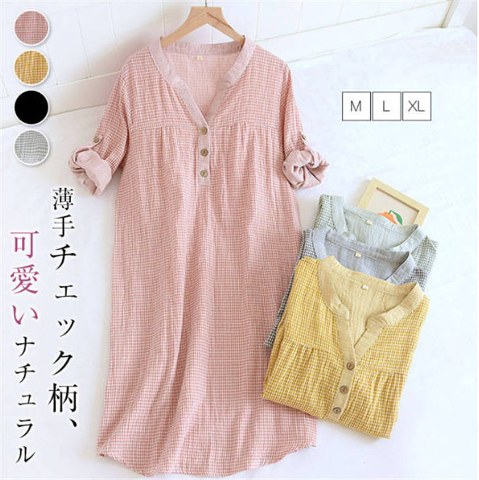 素材 100%コットン カラー ピンク、イエロー、ミント、グレー(写真参照) ※モニターの発色の具合により実際の商品と色が異なる場合がございます。 サイズ(cm) M: 着丈96 バスト106 肩幅38 袖丈44 L: 着丈97 バスト110 肩幅41 袖丈46 XL: 着丈98 バスト114 肩幅44 袖丈48 ※サイズは人の手によって測っているため、2-4cmの誤差がある場合があります。予めご了承下さいませ。 生産国 中国 キーワード ワンピース チェック柄 綿 レディース 新作 Vネック ルームウエア ガーゼ パジャマ 七分袖 コットン ルームワンピース 薄手 プルオーバー ボタン ルーム チュニック 膝上ワンピース 膝上 春 夏 秋 ワンピ ナイトウェア 寝間着 寝巻き インナー シンプル カジュアル 大きいサイズ 部屋着 大人 通気性 柔らか リラックス 送料無料 ご注意 下さい ● 当店では複数店舗での在庫共有をしており、システムで在庫の調整を行っておりますが、 ご注文が集中した場合、在庫にズレが生じることがございます。 在庫数の更新が間に合わずご注文頂きました商品が欠品となり、 後ほどご連絡させていただく場合もございます。 大変ご迷惑をお掛けする場合がございますが、 あらかじめご了承くださいますようよろしくお願い致します。