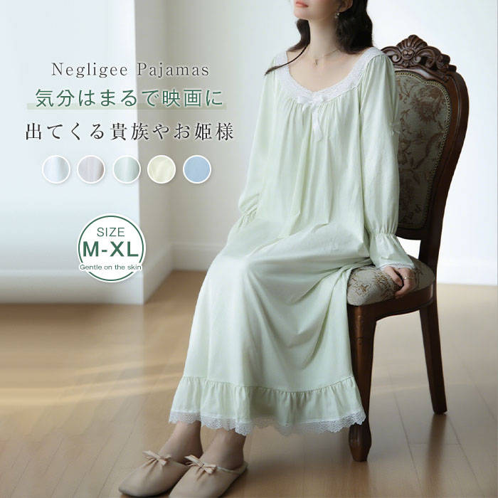 カラー ホワイト|ピンク|グリーン|イエロー|ブルー ※ モニターの発色の具合により実際の商品と色が異なる場合がございます。 サイズ M: バスト100 肩+袖長58 着丈105 L: バスト104 肩+袖長59 着丈106 XL:バスト108 肩+袖長60 着丈107 ※サイズは人の手によって測っているため、1-3cmの誤差がある場合があります。予めご了承下さいませ。 素材 綿96%+ポリウレタン4% 生産国 中国製 キーワード ネグリジェ 姫系 ワンピースパジャマ レディース 綿 長袖 ルームワンピース パジャマ ルームウェア ナイトウェア ロングワンピース Aライン コットン 柔らか レース お姫系ルームウェア ゆったり 可愛い 秋冬 上品 セクシー リラックス 寝間着 部屋着 プレゼント 記念日 送料無料 注意事項 ◆すべての商品は、実物の色あいに近くなるように自然光での撮影を基本にしていますが、お客様のモニター環境などにより実物とは若干異なる場合がございます。 ◆表記のカラー名称は、商品識別のための名称で実際の色を表すものではございません。 ◆表記している商品以外のものはセットではございません。 ◆商品によっては若干の誤差( 1〜3cm)が生じる場合がございますので、あらかじめご了承ください。 ◆縫いどまりから出ているほつれの元ではない糸の飛び出しや、ボタンホールがきつめ、折シワ等は、商品の不良ではございませんのでご了承ください。 ご注意 下さい ● 当店では複数店舗での在庫共有をしており、システムで在庫の調整を行っておりますが、 ご注文が集中した場合、在庫にズレが生じることがございます。 在庫数の更新が間に合わずご注文頂きました商品が欠品となり、 後ほどご連絡させていただく場合もございます。 大変ご迷惑をお掛けする場合がございますが、 あらかじめご了承くださいますようよろしくお願い致します。