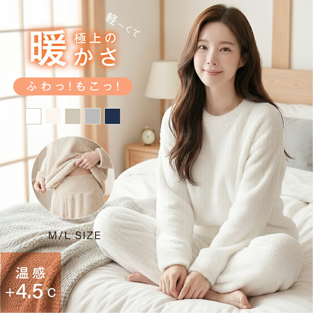 ■商品仕様 【サイズ】 【M上下セット】:バスト54cm/着丈71cm/肩幅42cm/袖丈56.5cm/パンツ丈98.5cm/ヒップ59cm 【L上下セット】:バスト54cm/着丈71cm/肩幅42cm/袖丈56.5cm/パンツ丈98.5cm/ヒップ59cm 【Fワンピース】:バスト56cm/着丈110cm/肩幅43.5cm/袖丈55cm 【タイプ】:上下セット、ワンピース 【カラー】:ブルー、アイボリー、ピンク 【素材】:ポリエステル ■商品紹介 【まるで空気のように軽やか。上品で可愛いルームウェアセット】 秋冬から春先まで、お家時間をより快適に、よりおしゃれに過ごしたい大人の女性へ。肌に触れる瞬間からやさしく包み込でくれる。 秋冬の冷え込みや、春、秋、冬の肌寒い季節に、暖かく快適に過ごせる。お家でくつろぐ時間も、おしゃれを楽しみたい「大人可愛い」。 来客時でもきちんと見える、ちょっとしたお買い物やゴミ出しなど、そのまま着て行ける「ワンマイルウェア」としても便利。 保温性に優れながらも通気性が良いため、秋冬は暖かく、春や秋の肌寒い時期にもぴったり。一年を通して大活躍するセットアップです。 ■注意事項 ■お客様がご利用のモニターの設定及び特性により、実際の商品とは色味が異なる場合がございます。 ■商品サイズは1~3cm程度の誤差が生じる場合がございます。あらかじめご了承くださいませ。●こちらもおすすめ パジャマ レディース 暖かい ハンガーラック 頑丈 2段 ●人気特集 寒さ対策グッズ