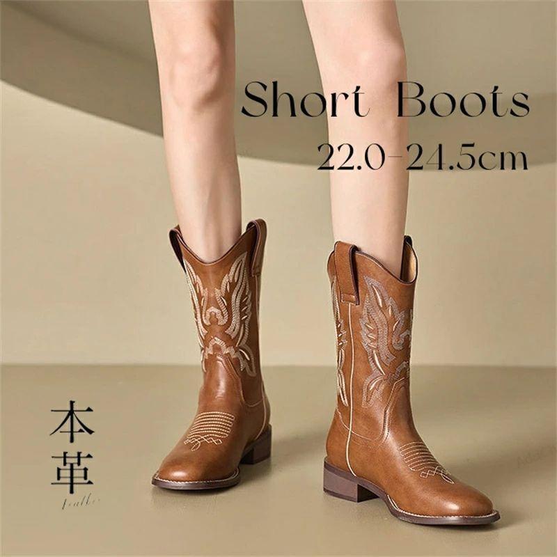 ▲サイズ: 22.0cm -24.5m ▲Heel:4cm ▲甲皮の素材:本牛革 ※平置き採寸となりますので、0.5-1cmの誤差についてはご容赦下さい ※素材感や色合いの表現には個人差があります。また画像は撮影状況やPC環境によりイメージや色合いが若干異なる場合がございますが予めご了承願います。 本革 牛革 ウエスタンブーツ レディース 刺繍入り ブーツ 秋冬 ロング 革 ブーツ レトロ カウボーイファッション ブラウン ウエスタン 太めヒール 歩きやすい 痛くない 靴 通学 通勤 秋冬 4cm Heel 22.5cm-25.0cm 送料無料