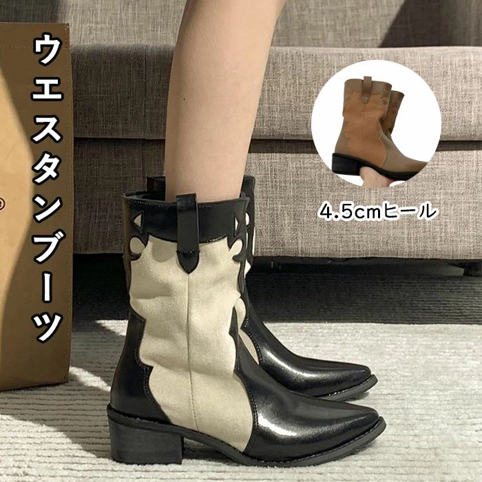 メーカー希望小売価格はメーカーカタログに基づいて掲載しています商品詳細●少しルーズなシルエットのウエスタンブーツでトレンド感と抜け感を両立。●筒周りは直線的なシルエイティで脚にピッタリとフィットしすぎずエフォートレスな印象に。●ヒールの高さは高すぎず低すぎないスタイルアップも叶うちょうど良い高さ。太いヒールなので安定感抜群。★おすすめポイント★【1】ウエスタンディテールが上品で大人らしい印象に。【2】カジュアルからキレイめなスカートスタイリングまで幅広く使っていただける。【3】デイリー使いはもちろん、通勤用としても最適。カラー:ブラウン|ホワイト素材 合成皮革サイズ明細:35(225)36(230)37(235)38(240)39(245)生産国:中国【送料無料】ブーツ レディース ミドル丈 ウエスタン ショートブーツ シューズ チャンキーヒール 太めヒール おしゃれ 疲れない 美脚見せ トレンド感 シンプル これ一足持っているとデイリーユースに重宝間違いなし。