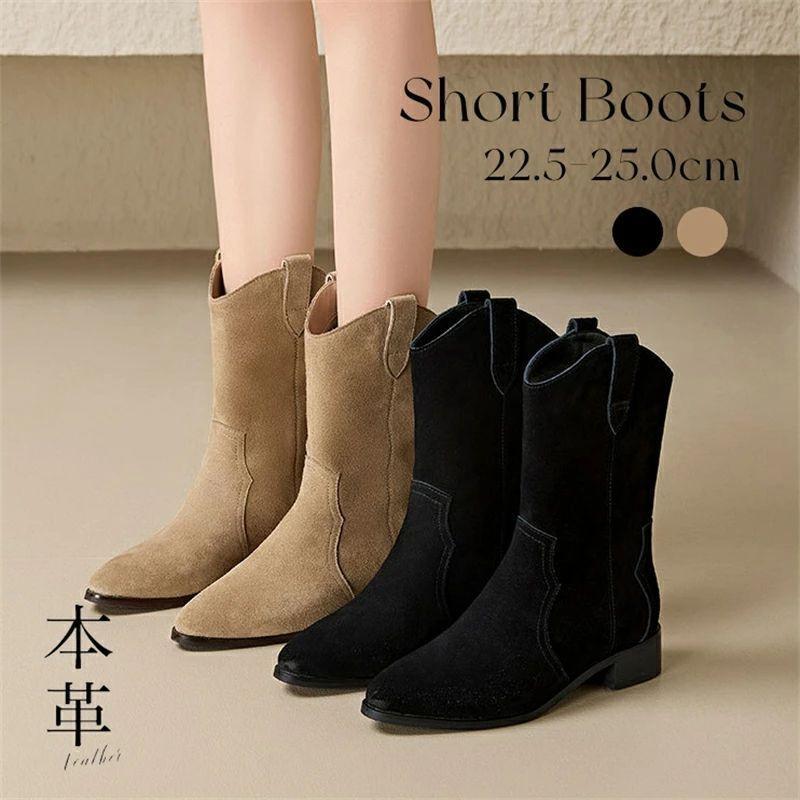 ▲サイズ: 22.5cm -25.0m ▲Heel:3.5cm ▲甲皮の素材:本牛革 ※平置き採寸となりますので、0.5-1cmの誤差についてはご容赦下さい ※素材感や色合いの表現には個人差があります。また画像は撮影状況やPC環境によりイメージや色合いが若干異なる場合がございますが予めご了承願います。 本革 牛革 ウエスタンブーツ スエード レディース ブーツ ウエスタン ポインテッドトゥ ミドル ショート 太めヒール 3.5cm チャンキーヒール 歩きやすい 痛くない 靴 通学 通勤 秋冬 3.5cm Heel 22.5cm-25.0cm 送料無料