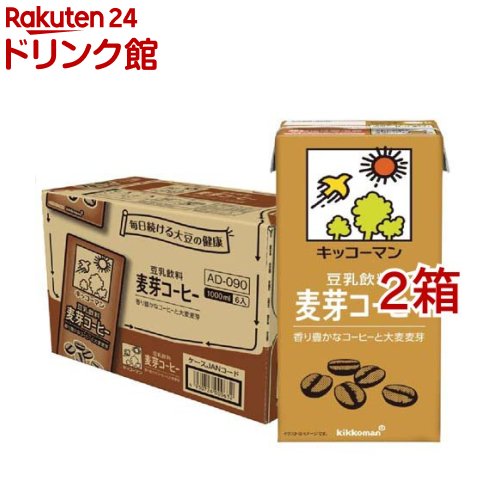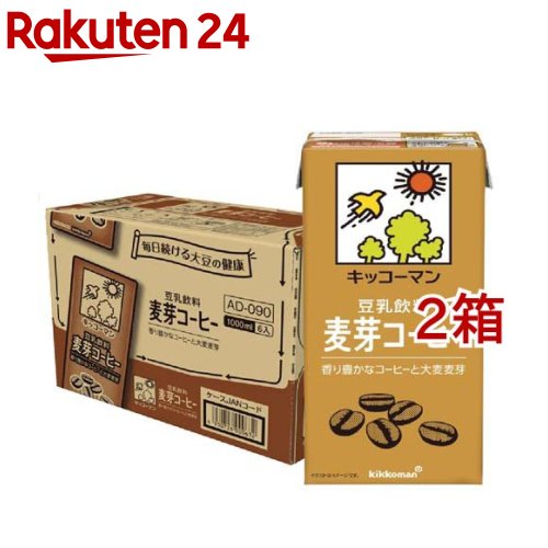 お店TOP>水・飲料>甘酒・豆乳・乳性飲料>豆乳>豆乳・豆乳飲料>キッコーマン 豆乳飲料 麦芽コーヒー (1L*6本入)【キッコーマン 豆乳飲料 麦芽コーヒーの商品詳細】●生豆を丹念にローストし抽出したコーヒーと、香ばしい「麦芽エキス」をおいしくブレンドしました。●大豆イソフラボンや大豆レシチンなどを含み、大麦麦芽と香り豊かなコーヒーをブレンドした美味しい豆乳飲料です。●非遺伝子組み換え大豆を使用●契約栽培丸大豆使用●コレステロールゼロ●植物性たんぱく飲料【品名・名称】豆乳飲料【キッコーマン 豆乳飲料 麦芽コーヒーの原材料】大豆(カナダ又はアメリカ)(分別生産流通管理済み)、糖類(ぶどう糖果糖液糖、砂糖)、麦芽エキス、米油、コーヒー、チコリエキス、デキストリン、天日塩/カラメル色素、乳酸カルシウム、乳化剤、香料、糊料(カラギナン)【栄養成分】(100ml)あたり熱量:66kcal、たんぱく質:2.4g、脂質:2.7g(飽和脂肪酸:0.41g)、コレステロール:0mg、炭水化物:8.1g(糖質:7.8g、食物繊維:0.3g)、食塩相当量:0.11g、カリウム:129mg、カフェイン:14mg、イソフラボン:14mg【アレルギー物質】大豆【保存方法】直射日光を避け、涼しい場所に保存してください。【注意事項】・大豆アレルギーの方はお控えください。他の大豆食品でアレルギー症状が出ない方でも、ごくまれにアレルギー発症例がありますので、少量からの試飲をおすすめします。・未開封の場合、常温で賞味期限まで保存ができます。よりおいしくお飲みいただくために冷蔵保存をお勧めします。・凍らせてから解凍すると、品質が劣化しますのでお控えください。・沈殿することがありますが、品質には問題ありません。よく振ってからお飲みください。・賞味期限とは開封前のおいしくお飲みいただける期限のことです。・ご使用の際はキャップを確実に閉め、軽く振ってください。・キャップに口をつけてお飲みにならないでください。又、キャップは小さなお子様がくわえて遊ぶと危険です。絶対におやめください。・ゴミの分別に関しては、お住まいの自治体の区分に従ってください。開封後は要冷蔵:室温に放置しないでください。お早めに(2-3日目安)お飲みください。【原産国】日本【ブランド】キッコーマン【発売元、製造元、輸入元又は販売元】キッコーマンソイフーズリニューアルに伴い、パッケージ・内容等予告なく変更する場合がございます。予めご了承ください。キッコーマンソイフーズ105-0003 東京都港区西新橋2-1-10120-1212-88広告文責:楽天グループ株式会社電話:050-5577-5043[豆乳/ブランド:キッコーマン/]