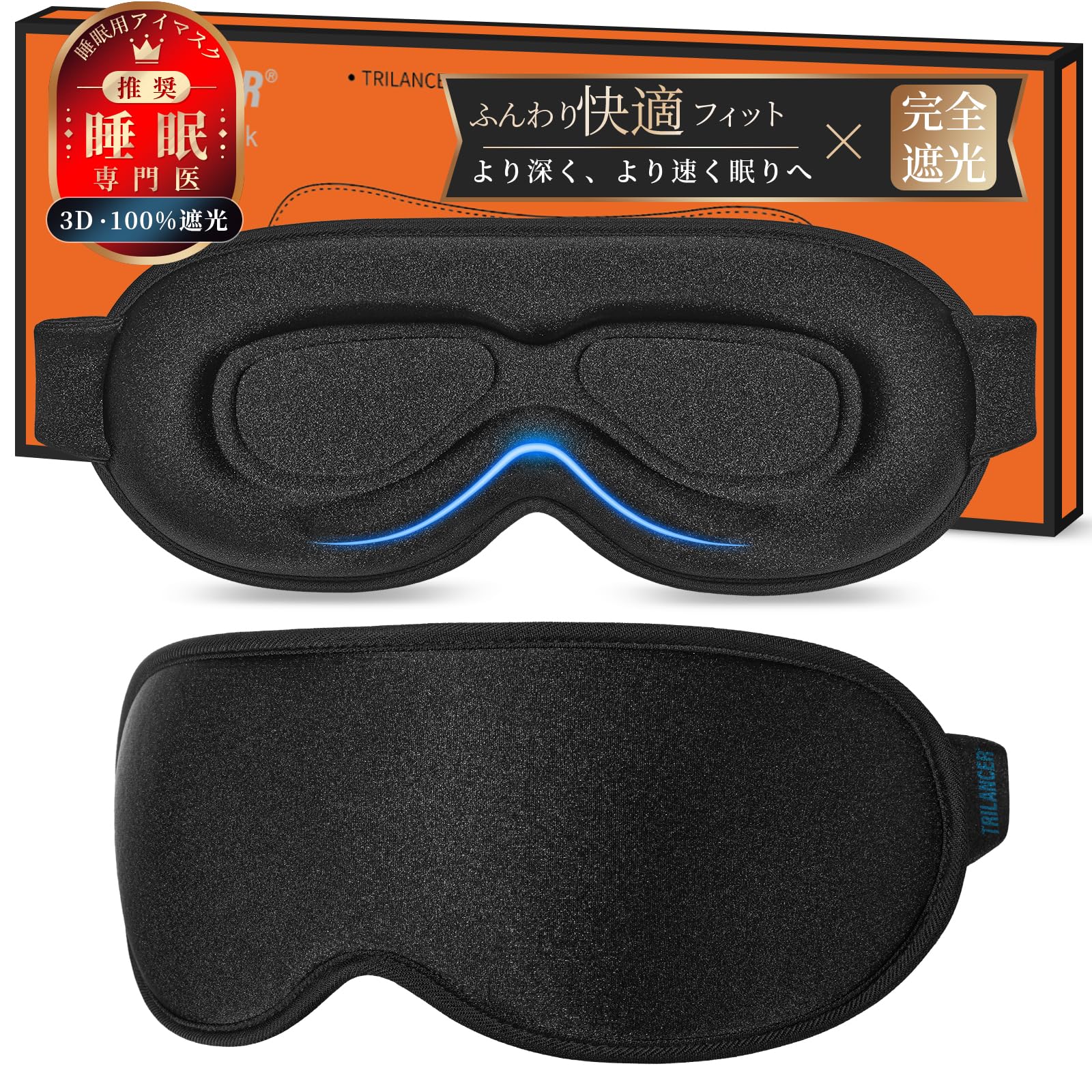 ・・【完全遮光・】- 安眠マスクの主な目的は、完全な遮光です。このアイマスクは、ユニークな28mmの高いくぼみのノーズブリッジデザインで、効果的に入り込む光を遮ります。すべての鼻の形に合うデザインで、飛行機・・、ビーチ・・・、オフィス・・・・でのお昼寝など、どんな場合でも真っ暗な環境を提供します。・・【横向き寝用デザイン・・】- 大抵の人が横向きに寝ることを好むことを理解し、このスリープマスクのデザインは、横向きに寝ている間に目とまつ毛を邪魔しないように、細心の注意を払って製作されています。実際、この安眠マスクは万能で、すべての睡眠姿勢に合います。・・【柔らかい、快適、通気性が良い・・・】- 快適なスリープマスクは、一晩中着用するために作られています。だからこそ、私たちは最高の形状記憶フォームと、人間工学的にデザインされたヘッドバンドだけを慎重に選び、スリープマスクを着用していることを忘れるぐらい快適であるように仕上げています。・・【目に圧力がかからない・・・♀・・・・♀・】- このスリープマスクは、目の所に12.5mmの厚みがあります。使用中に最大の快適・・さを確保するために、目に一切圧力がかからないようになっています。まつ毛エクステンションをしているユーザーでも自由に目を開けられます。・・【2年間保証・・・】- Trilancerは、当社の全製品の品質をお約束します。自信を持って、このスリープマスクに2年間保証を提供いたします。