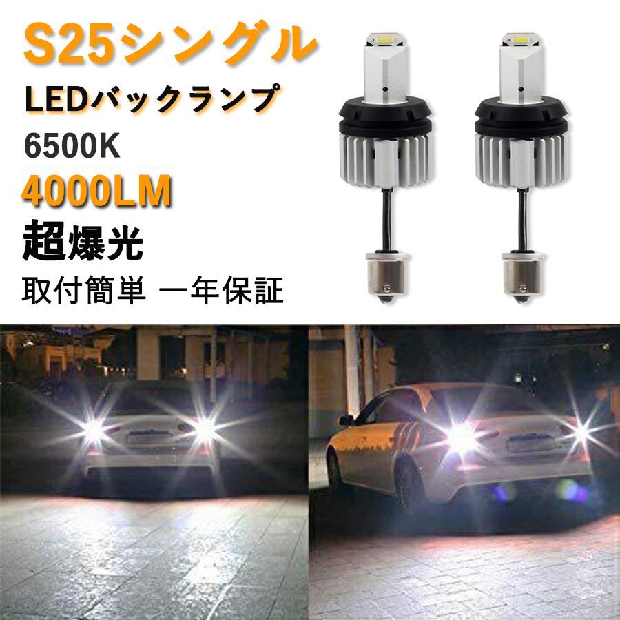 S25シングル LEDバックランプ S25ピン180°シングル 後退灯 4000LM 爆光 DC12V車対応 バックライト キャンセラー内蔵 CSPチップ 9-30V ホワイト 6500K 無極性 2個セット 1年保証