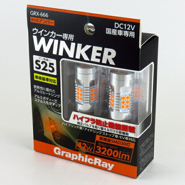 アークス LEDウインカーバルブ S25 アンバー ハイフラ防止機能搭載 42W 3200lm アルミヒートシンク ステルスバルブ GRX-666