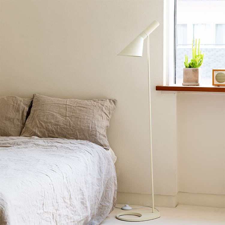 DETAILS デンマークの偉大な建築家アルネ・ヤコブセンが、自身の最高傑作「ラディソンSASロイヤルホテル」のためにデザインしたAJランプシリーズ。 伝統的な様式を否定し、軽やかで近未来的なフォルムを追い求めた、ミニマルなデザインは、半世紀以上経った今もなお世界中の人々に愛され続けています。 こちらはアルネ・ヤコブセン(Arne Jacobsen)がデザインした「AJフロアランプ」のリプロダクト製品です。 商品サイズ 本体:幅342×奥行200×高さ1270(mm) シェード:直径165×高さ342(mm) ベース:幅300×奥行200×高さ24(mm) コードの長さ:約2000(mm) 重量 約2.7(kg) 素材 スチール カラー ブラック/ホワイト 仕様 口金:E26 60W×1まで対応(電球別売) ※推奨電球サイズ:最大径60×全長116(mm)以下 重量80(g)以下 フットスイッチタイプ(スイッチ位置:本体ベースから約280mm) 変更情報 2022年11月10日:サイズ・重量・カラーを変更しました。 注意事項 お買い物の際は、会社概要の「その他の注意点」を必ずご確認ください。