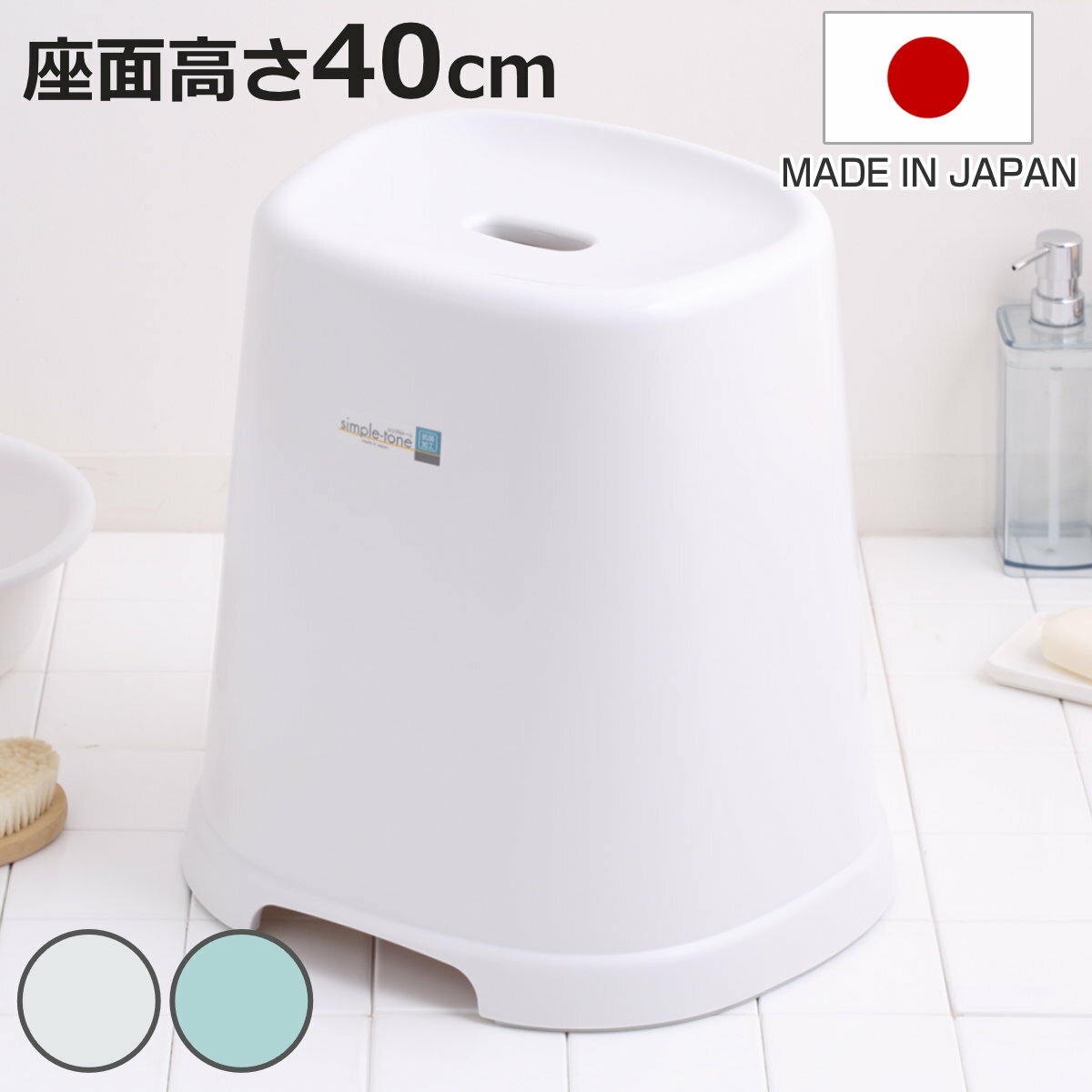 サイズ約 幅40×奥行32×高さ41(cm)座面高:約 40(cm)重量約 1300g内容量1個材質ポリプロピレン、他種類ホワイト、ブルー生産国日本製耐荷重100kg注意事項※商品ページ内には別の商品を含む画像を使用しています区分返品・キャンセル区分(小型商品)ギフトラッピングページを見る風呂椅子 シンプルトーン 座面高さ 40cm 日本製おすすめポイント※商品ページ内には別の商品を含む画像を使用していますシンプルで機能的な風呂椅子 高さ40cm使いやすい形状とシンプルなデザインの風呂椅子です。台形の座面は足あたりがやわらかく、安定して座りやすい形状です。商品詳細座り心地の良いフォルム幅広の座面がお尻を包み込むようにフィットし、どなたでも安心してお使いいただけます。女性はもちろん、男性が座っても安定感があります。軽量で持ち運びもラクラク本商品はポリプロピレン製で軽量設計です。座面の穴に手を掛けて持ち運びできるので、掃除のときの移動も簡単です。滑り止め加工付き床との接地部分には、キズ防止効果のある滑り止めが付いています。脚ゴムは取り外し可能なので隅々までお手入れしていただけます。凹凸を無くした裏面内側は石鹸カスや水垢が溜まりやすい無駄な凹凸がないため、汚れが付着するのを予防します。抗菌加工でいつでも清潔抗菌効果のある銀イオンを配合しているので、いつでも清潔を保てます。ヌルヌルや臭いの発生が少なくなり、快適で衛生的なバスルームが長続きします。※こちらの表示はシールタイプなので剥がしてご使用いただけます。バスルームに合わせて選べる5サイズ座面の高さが18cm、21cm、25cm、31cm、40cmの5サイズ展開です。お好みのカラーとサイズをお客様のニーズに合わせてお選びいただけます。※こちらは高さ40cmの商品ページです。【適した風呂イスの選び方】浴室カウンターの高さから「-5cm」が使いやすい風呂イスの高さ目安です。また湯おけを床に置く方は高さ20?25cm、シャワー派の方は35cmがおすすめです。充実のラインナップ「シンプルトーン」シリーズシンプルで機能的、自分にあった「快適」が選べる使いやすい「シンプルトーン」シリーズ。シリーズで揃えることで、清潔感溢れるバスルームを演出します。カラーサイズ違い風呂椅子 18cm風呂椅子 21cm風呂椅子 25cm風呂椅子 31cm風呂椅子 40cm【▲このページの商品】あわせて買いたい湯桶洗面器手桶関連キーワード:フロいす ふろいす 風呂イス いす お風呂椅子 インテリア 白 青 お風呂グッズ バスアイテム 洗面グッズ 家族 清潔 衛生的 バス用品 便利 お洒落 オシャレ かわいい 可愛い カワイイ LH13069関連商品はこちら風呂椅子 シンプルトーン 座面高さ 31cm 2,760円風呂椅子 シンプルトーン 座面高さ 25cm 2,370円風呂椅子 シンプルトーン 座面高さ 21cm 1,320円風呂椅子 シンプルトーン 座面高さ 18cm 990円風呂椅子 ミルキーバス 高さ40cm 日本製 3,260円風呂椅子 座面高さ40cm Emeal エミー3,580円風呂椅子 ミルキーバス 高さ30cm 高さ402,280円?風呂椅子 座面高さ25?40cm Emeal 3,100円?風呂椅子 バスチェア 高さ30cm AIRY 2,940円風呂椅子 ハユール 座面高さ 20cm 30c1,970円?風呂椅子 座面高さ30cm Emeal エミー3,310円風呂椅子 座面高さ25cm Emeal エミー3,100円