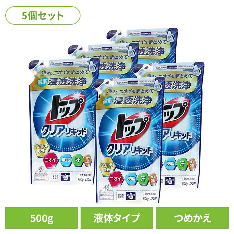 ※注文確定時に時間指定のプルダウンが出てくる場合がございますが、設置込み商品ご注文の場合は時間指定できかねますので、予めご了承ください。 さらさらリキッドがまとめ洗いでも繊維の奥まで浸透洗浄。幅広い汚れをさらっと落とし、黄ばみを防いで衣類を白く洗いあげる液体洗剤です。・汗、皮脂、食べこぼしなどの汚れに加え、ニオイ、ウイルス除去まで対応。・液がさらさらだから、キャップの液ダレや洗濯機の洗剤投入口の汚れを抑制します。・微香性だから、柔軟剤の香りを邪魔しない。・すすぎ1回にも対応。●商品サイズ(cm)幅約15×奥行約9×高さ約26●内容量500g×5●成分界面活性剤(21% ポリオキシエチレンアルキルエーテル、直鎖アルキルベンゼンスルホン酸塩)、安定化剤、酵素(検索用:ライオン 衣料用洗剤 合成洗剤 液体タイプ トップ クリアリキッド 詰め替え 500g すすぎ1回 LION 4903301355618)最強翌日配送対象商品に関するご案内 最強翌日配送対象商品・対象地域に該当する場合は最強翌日配送マークがご注文カゴ近くに表示されます。 最強翌日配送可能なお支払方法は【クレジットカード、代金引換、全額ポイント支払い】のみとなります。 下記の場合は最強翌日配送対象外となります。 ・15点以上ご購入いただいた場合 ・時間指定がある場合 ・ご注文時備考欄にご記入がある場合 ・決済処理にお時間を頂戴する場合 ・郵便番号や住所に誤りがある場合 ・最強翌日配送対象外の商品とご一緒にご注文いただいた場合 ・お届け先住所文字数が40文字以上の場合 関連キーワード(本商品の説明ではありません)母の日 父の日 敬老の日 こどもの日 クリスマス バレンタイン ホワイトデー ハロウィン お正月 成人の日 成人式 記念日 誕生日 卒業式 入学式 お歳暮 お中元 春 夏 秋 冬 梅雨 節分 ひな祭り 七夕 十五夜 初詣 年越し 夏祭り 花火大会 結婚祝い 内祝い 出産祝い 快気祝い 還暦祝い 古希 喜寿 傘寿 米寿 卒寿 白寿 百寿 新築祝い 引っ越し祝い 開店祝い 開業祝い 就職祝い 昇進祝い 合格祝い 銀婚式 金婚式 七五三 長寿祝い 御礼 お母さん お父さん 義母 義父 祖父 祖母 おばあちゃん おじいちゃん 娘 息子 彼氏 彼女 恋人 友達 上司 先輩 後輩 同僚 キッズ 子供 幼児 ベビー 赤ちゃん 育児 学生 社会人 シニア 10代 20代 30代 40代 50代 60代 70代 80代 90代 一人暮らし 単身赴任 主婦 主夫 新生活 家族暮らし 子育て 旅行 トラベル ライブ ホームパーティ ビジネス 法人 ギフト プレゼント