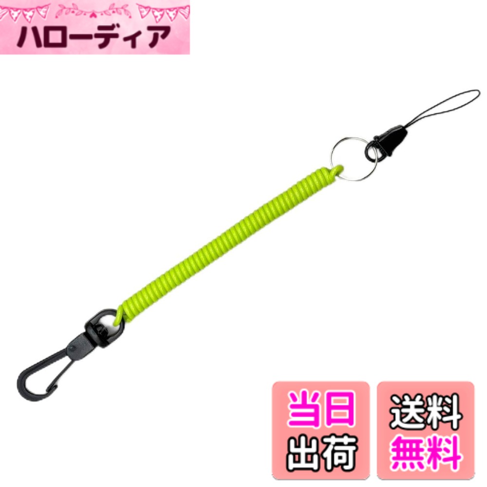 【送料無料】BeyonMind 鍵 スマホ 落下防止 スーパーコイルフック ナスカン / 紛失防止 キーチェーン (約100cm) 伸びる コード (日本製 MIND) 色:イエローグリーン、サイズ:100