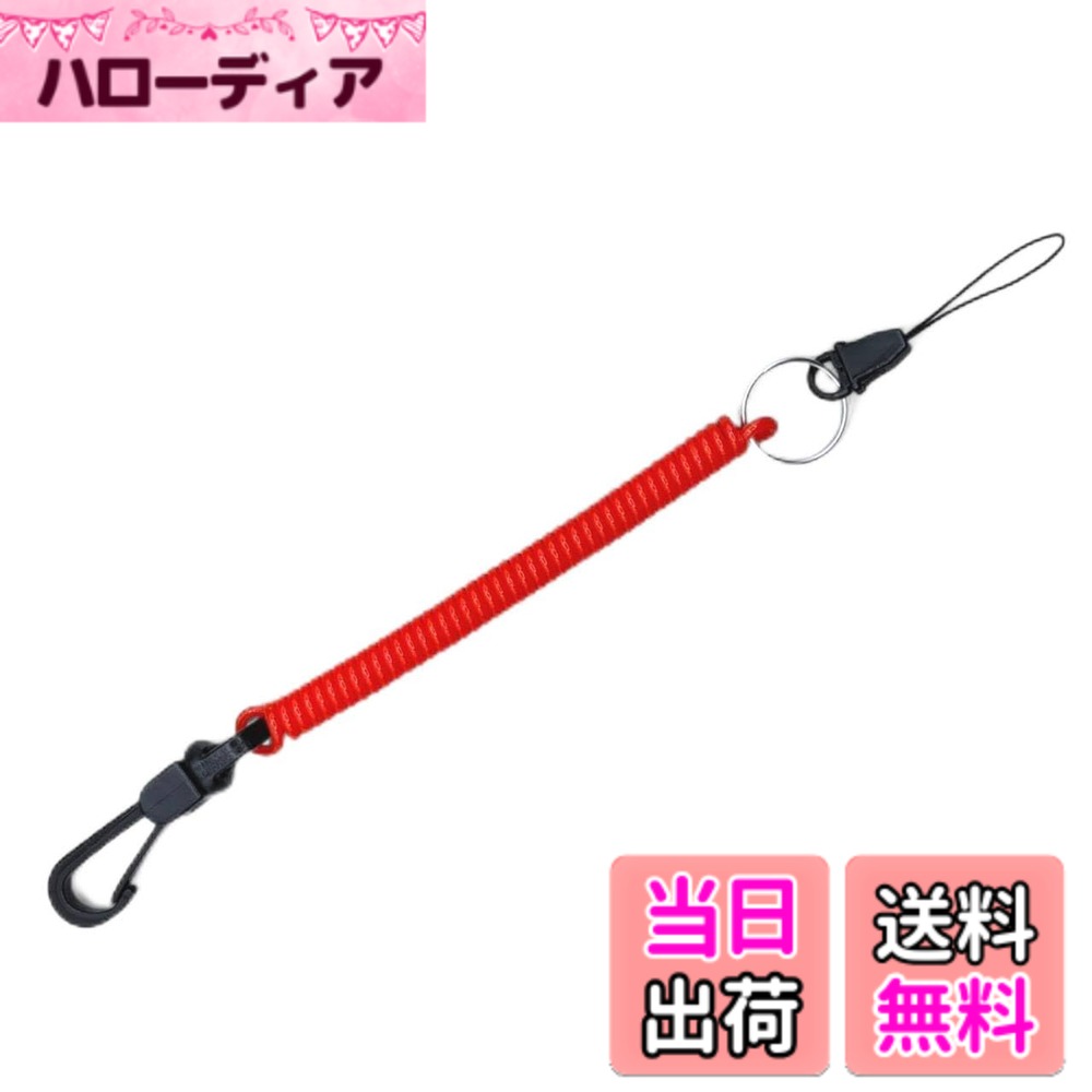 【送料無料】BeyonMind 鍵 スマホ 落下防止 スーパーコイルフック ナスカン / 紛失防止 キーチェーン (約100cm) 伸びる コード (日本製 MIND) 色:レッド、サイズ:約100cm