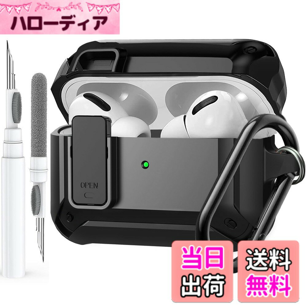 【送料無料】Olytop Airpods Pro 2/1 Gen ケースカバー ロック付き (2019/2022/2023)、Airpod Pro 第2世代/第1世代用頑丈なロックケース 耐衝撃アーマー 保護スキン Apple iPod Pro用 - ブラック 色:ブラック、サイズ:For Airpods Pro 1/2