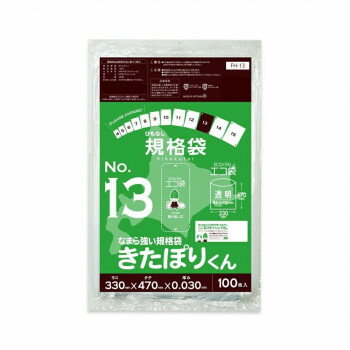 ひもなし規格袋 No.13 なまら強い規格袋きたぽりくん FH-13 透明 100枚×20冊