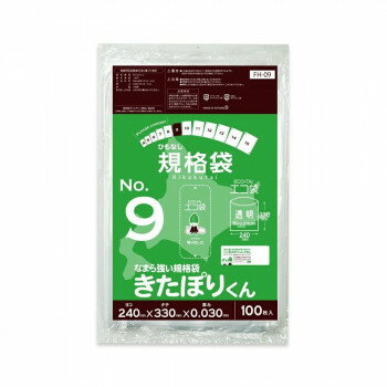 ひもなし規格袋 No.9 なまら強い規格袋きたぽりくん FH-09 透明 100枚×30冊