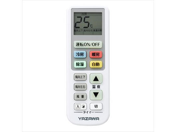 【商品説明】バックライト付で表示が見やすい。バックアップ機能で電池交換の際のメーカーコード再設定が不要【仕様】●対応社数:大手13社●材質:本体/ABS ボタン/シリコン●使用電池:単4形乾電池×2本(別売)●動作距離(m):約7(使用機器や部屋の条件によって変わります。)●本体寸法(mm):W55×H155×D23●本体重量(電池含まず)(g):82●タイマー設定:入・切●パッケージ形態:差し込み式スライドブリスター●パッケージサイズ(mm):W111×H215×D25●生産国:中国【備考】※メーカーの都合により、パッケージ・仕様等は予告なく変更になる場合がございます。【検索用キーワード】ヤザワコーポレーション やざわこーぽれーしょん YazawaCorporation ヤザワ やざわ YAZAWA エアコン RC16W 生活家電 冷暖房器具 家電 季節 1個 オーディオ リモコン エアコンリモコン その他生活家電暗闇でも分かる蓄光ボタン