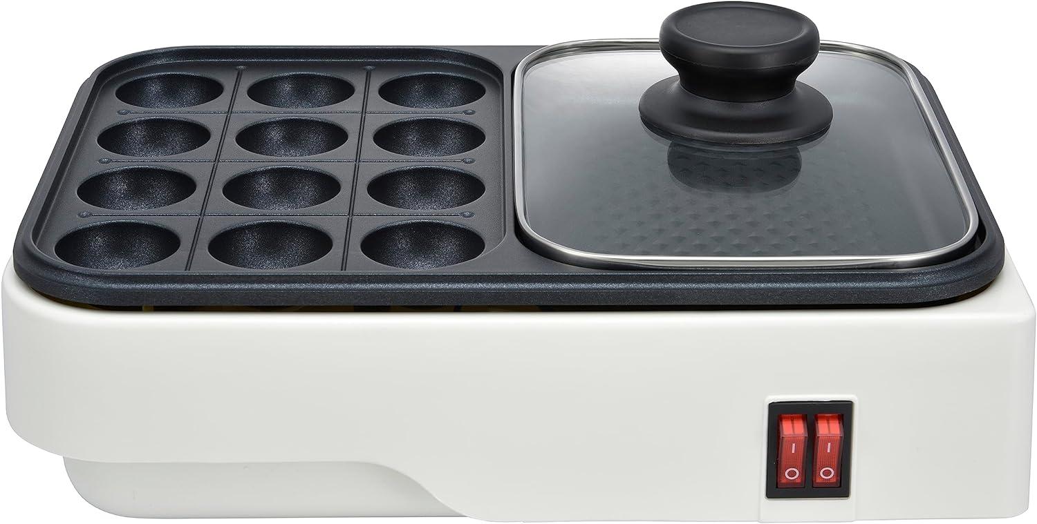 メーカー IRISOHYAMA アイリスオーヤマ 商品カテゴリ ホットプレート・グリル鍋>ホットプレート 発送目安 1週間以内に発送予定 お支払方法 銀行振込・クレジットカード 送料 送料無料 特記事項 その他 余分な油を落とす、穴あきプレートを採用した網焼き風ホットプレートです。穴あきプレートで油を落とすため、煙が発生しにくく、また油の飛び散りも少ないので片付けが簡単です。穴から落ちた油は水受皿へ落ちるので、お手入れが簡単です。プレートは平面プレート・焼肉プレート・たこ焼きプレートの3枚セットです。プレートの表面は遠赤フッ素コート仕上げです。本体ガード、ふた、水受皿、プレート類は丸洗い可能で、お手入れが簡単です。(ヒーターユニット、コントローラー、しゃ熱板は水洗い不可)●電源:AC100V(50/60Hz共用)●定格消費電力:1300W●設定温度:保温・140〜250°C●製品サイズ:使用時:W484×D341×H80mm(プレート1枚装着時)/収納時:W484×D341×H183mm●プレートサイズ:約W420×D284mm●コードの長さ:1.8m●付属品:平面プレート、焼肉プレート、たこ焼きプレート、水受皿、ふた、コントローラー●保証期間:お買い上げ日より1年間------------------以上が表データ--------------------