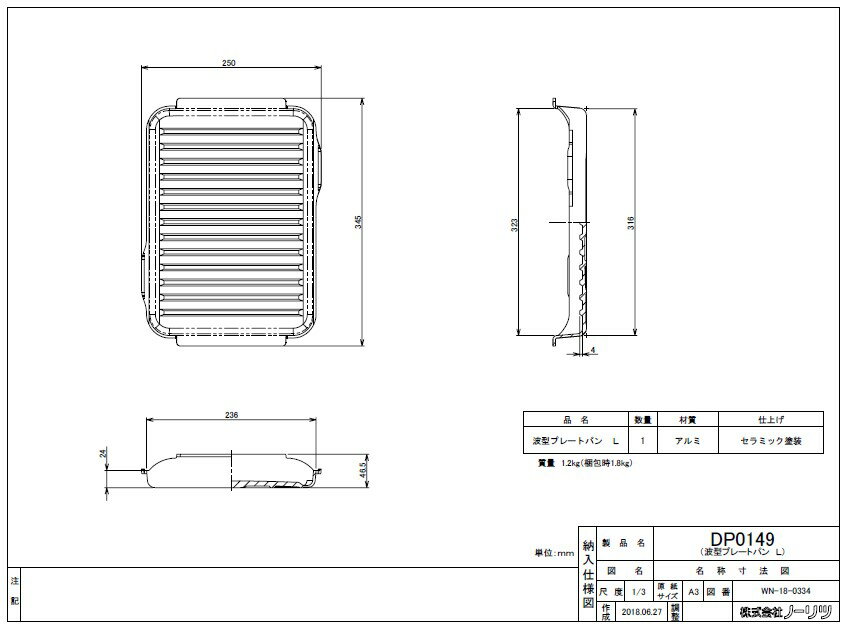 ⊥・ノーリツ DP0141 (0707897) : マルチグリル用調理オプション 波型プレートパン ∴