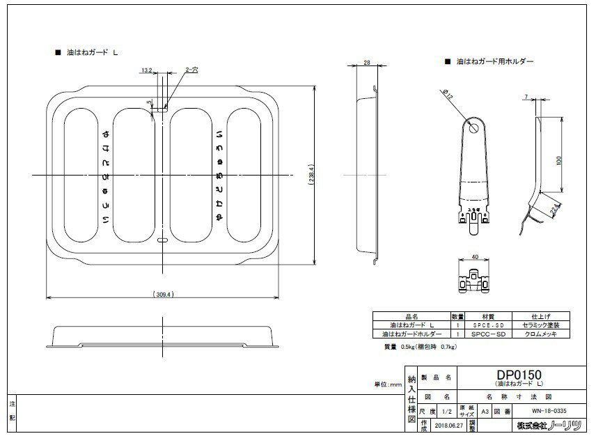 ⊥・ノーリツ DP0150 (0503156) : マルチグリル用調理オプション 油はねガード ∴