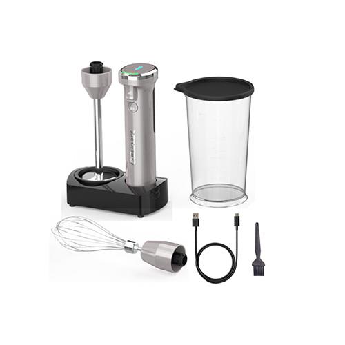 ↑↑↑正確な在庫状況は上記バナー「在庫状況を確認する」をクリックして頂き、必ずご確認ください。 長期保証をご希望のお客様は下記の表より「商品+長期保証」のページへ移動してご注文ください。※長期保証は法人加入や業務使用、譲渡や再販はご利用いただけません。 ■クイジナート最軽量モデル■コードレスでもパワー十分/DCモーター搭載■撹拌力にすぐれたブレンダーデザインRHB1070J外形寸法(約): [ブレンダー]幅60×奥行65×高375mm [ウィスク]幅60×奥行65×高420mm [チョッパー]幅120×奥行120×高315mm [おろしディスク]幅120×奥行120×高315mm [充電スタンド]幅150×奥行90×高38mm質量(約): [ブレンダー]530g [ウィスク]510g [チョッパー]700g [おろしディスク]720g [充電スタンド]135g電池種類:リチウムイオン電池定格時間: [ブレンダー]1分 [ウィスク]3分 [チョッパー]1分 [おろしディスク]2分回転数(約): [ブレンダー]13,500回/分 [ウィスク]1,050回/分 [チョッパー]2,200回/分 [おろしディスク]2.200回/分USBケーブルの長さ:1m(有効長)充電時間の目安:約1時間45分 ※クイジナートのアダプタRH-DJC(5V/2A)使用時。 ※使用するUSB充電アダプタによって充電時間は異なります。回転速度:高速時付属品: ブレンダー ウィスク チョッパー おろしディスク 専用カップ フタ 充電スタンド USBケーブル(Type-C) クリーニングブラシ レシピブック※製品のデザインや仕様は改善などのため予告なく変更することがあります※RHB-100Jとはアタッチメントの互換性はありません。コードレスだと毎日の料理がこんなにストレスフリー