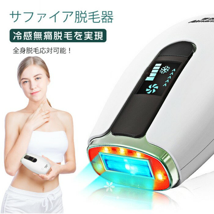 【商品詳細】■サイズ:18cmx14.2cmx4.2cm■製品重量:300g■電源:AC100-240V、50/60Hz■定格消費電力:48w 【サロン級HIPL光&冷却機能搭載&無痛脱毛】従来のIPL技術より強いサファイア冷感無痛脱毛技術を採用して、脱毛部位の表皮温度は瞬時にまで下がります、快適感を高め、痛みをなくなりに脱毛しやすくなります。パルスが皮に浸透して、お肌の質を向上させ、滑らかで若々しい肌に取り戻します。持続的な脱毛、皮膚の再生と改善に理想的な選択である。 【99万発の照射回数・LEDディスプレー&男女兼用】光美容器にはLCDディスプレイを搭載しており、使用モードと強度表示は一目瞭然です!また、最高レベルで照射回数は99万発に達し、半永久的に使用できます。女性だけでなく、男性も使用できます。家族や友人と一緒に使用できます。一家族あたり一台で十分です。自宅でも気軽に脱毛できる家庭用脱毛器です。
