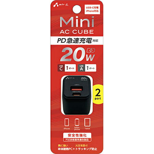 ↑↑↑正確な在庫状況は上記バナー「在庫状況を確認する」をクリックして頂き、必ずご確認ください。 ■PD20W対応(USB-C)、スマホはもちろん、タブレットの急速充電もOK。■USB-CとA、2ポート搭載、スマホ等の機器を2台同時充電可能。※2ポート同時使用時は15Wで分散■USB-CポートはPPS規格対応、対応するスマートフォンを高効率、低発熱で充電可能。■持ち運びに便利な手のひらコンパクトサイズ。AKJPDC20BK入力:AC100V-240V 50/60Hz 0.5A出力:DC[USB-C]PD20W(Max)(5V/3A 9V/2.22A 12V/1.67A)PPS:19.8W(Max)(3.3-11V/1.8A)[USB-A]18W(Max)(3.6-6V/3A 6.1-9V/2A 9.1-12V/1.5A)[USB-C+USB-A]15W(Max)(5V/3A)サイズ:約W31×D38×H32mm重量:約41g素材:[本体]PC [プラグ部]PC、銅パッケージサイズ:約W56×D50×H160mmパッケージ込重量:約58g急速パワフル充電 コンパクトで2ポート搭載! 20W PD急速充電