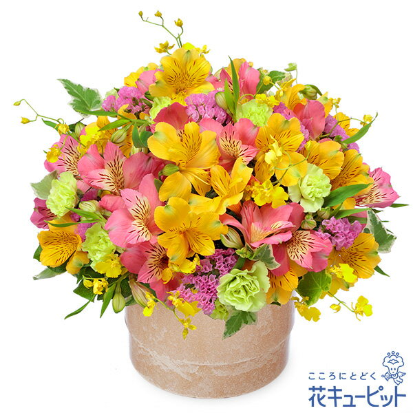 ■【新築引っ越し祝い】アルストロメリアのポットアレンジメント アレンジメント/オールラウンド 9790 円(税込)ピンクと黄色の2色のアルストロメリアをたっぷりと生けたアレンジメント。ふんわりとしたシルエットが魅力です。新築やお引っ越しの晴れやかな気持ちを、フレッシュな花でお祝いしましょうお届け先近くの花キューピットのお店から、メッセージカード付で直接お届けいたします。※商品価格にはご利用手数料990円(税込)が含まれております。※配達不能な区域がありますので必ずご確認ください。配達不能地域へのご注文についてはキャンセルとさせていただきます。【色合い】:ミックス【スタイル】:アレンジメント【主な花材】:ピンクアルストロメリア、イエローアルストロメリア【サイズ】:高さ30×幅30×奥行30cm【こんなご用途に】:新築祝い・改装・改築祝いご注文に関する注意事項※写真はイメージです。 地域・季節によって、一部花材・花器等が異なる場合がございます。商品価格にはご利用手数料990円(税込)が含まれております。※配達不能な区域がありますのでご確認ください。配達不能地域へのご注文についてはキャンセルとさせていただきます。※メッセージカードは無料にてお付けします。※メッセージカードにはお名前は入りません。必要な場合はメッセージ内にご記入ください。 『 無 料 メ ッ セ ー ジ ご 利 用 の 方 へ 』 ●「定型文をご利用の場合」 ・上記商品欄の【メッセージ】を選択 ●「フリー入力をご利用場合」※産直ギフトはご記入していただいても、対応できません。 ・メッセージの入力場所:注文確認画面内の備考欄にございます、メッセージ入力欄にて承ります。 ・メッセージの文字制限:差出人のお名前を含み30文字まで。絵文字、機種依存文字などの文字は使用できません。 ※フリー入力をご利用の場合、上記商品欄の【メッセージ】で選択されたメッセージは記載されませんお届け日について※ご購入商品、お支払い方法により詳細が異なりますのでご注意ください。 ※コンビニ前払いの場合は:入金期限日前迄にご入金ください。※コンビニ前払いの場合、お花のご手配は入金後となります。期日までにお支払いが確認できない場合は、キャンセル扱いとさせていただきます。カード決済エラーによる入金遅延もこれに準じます。 注文後に送付されます【注文確認メール】に記載のある、支払い期日までにご入金ください。お届け先へ事前に在宅確認の連絡をする場合があります。なお、連絡がつかない場合は、ご指定の日時にお届けができない場合がございます。■コンビニ前払い際の注意ご注文後に、お支払い受付番号を記載したメールを楽天市場からお送りいたします。お支払いの際にはお支払い受付番号が必要です。※お届け希望日前日を過ぎての入金の場合、入金期限内でもお届け日を変更させていただく場合がございます。予めご了承ください。
