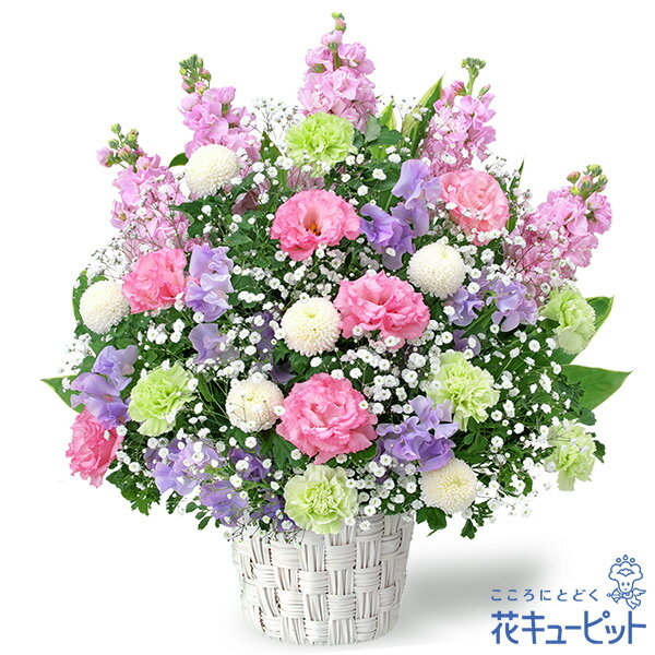 ■【お供え・お悔やみの花】お供えのアレンジメント アレンジメント/ワンサイド 7590 円(税込)柔らかく優しい色合いのトルコキキョウで、故人への深い愛情と感謝を表現したお供えのアレンジメントです。四十九日法要以降に贈るのはもちろん、通夜・葬儀、お盆やお彼岸に贈る花としても適しています。お悔やみのお花を地域のしきたりにあわせお花のプロがご用意いたしますので、安心してご利用いただけます。お届け先近くの花キューピットのお店から、メッセージカード付で直接お届けいたします。※商品価格にはご利用手数料990円(税込)が含まれております。※配達不能な区域がありますので必ずご確認ください。配達不能地域へのご注文についてはキャンセルとさせていただきます。【色合い】:ミックス【スタイル】:アレンジメント【主な花材】:ピンクトルコキキョウ、白トルコキキョウ【サイズ】:高さ40×幅38×奥行23cm【こんなご用途に】:お供え、弔事、お悔やみ、法事、法要、一周忌、お彼岸、お盆、新盆ご注文に関する注意事項※写真はイメージです。 地域・季節によって、一部花材・花器等が異なる場合がございます。商品価格にはご利用手数料990円(税込)が含まれております。※配達不能な区域がありますのでご確認ください。配達不能地域へのご注文についてはキャンセルとさせていただきます。※メッセージカードは無料にてお付けします。※メッセージカードにはお名前は入りません。必要な場合はメッセージ内にご記入ください。 『 無 料 メ ッ セ ー ジ ご 利 用 の 方 へ 』 ●「定型文をご利用の場合」 ・上記商品欄の【メッセージ】を選択 ●「フリー入力をご利用場合」※産直ギフトはご記入していただいても、対応できません。 ・メッセージの入力場所:注文確認画面内の備考欄にございます、メッセージ入力欄にて承ります。 ・メッセージの文字制限:差出人のお名前を含み30文字まで。絵文字、機種依存文字などの文字は使用できません。 ※フリー入力をご利用の場合、上記商品欄の【メッセージ】で選択されたメッセージは記載されませんお届け日について※ご購入商品、お支払い方法により詳細が異なりますのでご注意ください。 ※コンビニ前払いの場合は:入金期限日前迄にご入金ください。※コンビニ前払いの場合、お花のご手配は入金後となります。期日までにお支払いが確認できない場合は、キャンセル扱いとさせていただきます。カード決済エラーによる入金遅延もこれに準じます。 注文後に送付されます【注文確認メール】に記載のある、支払い期日までにご入金ください。お届け先へ事前に在宅確認の連絡をする場合があります。なお、連絡がつかない場合は、ご指定の日時にお届けができない場合がございます。■コンビニ前払い際の注意ご注文後に、お支払い受付番号を記載したメールを楽天市場からお送りいたします。お支払いの際にはお支払い受付番号が必要です。※お届け希望日前日を過ぎての入金の場合、入金期限内でもお届け日を変更させていただく場合がございます。予めご了承ください。