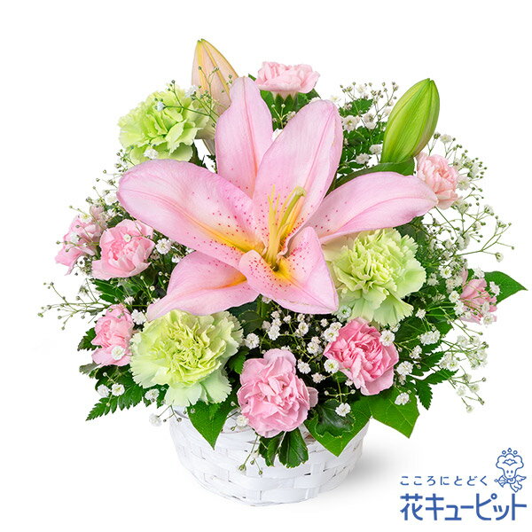 【お祝い返し】花キューピット 花 ギフト お祝い 記念 感謝 お礼 プレゼントピンクユリの華やかアレンジメントyu00-512715