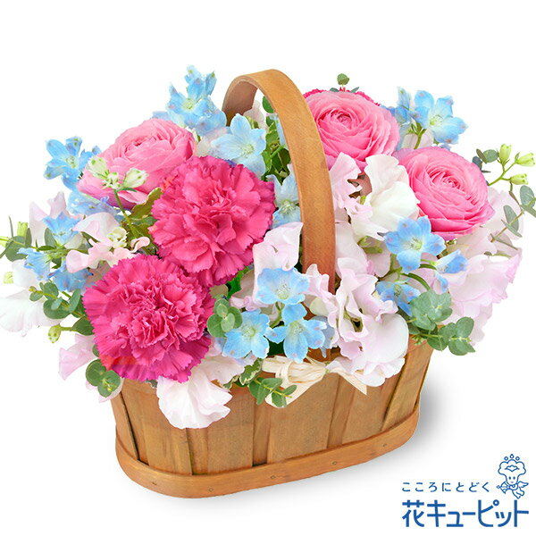 ■【1月の誕生花(スイートピー)】春色のハーモニーバスケット アレンジメント/オールラウンド 7590 円(税込)可憐な姿が春を告げる妖精のようにも見える、スイートピーを加えたアレンジメントです。爽やかなブルー系小花と暖かなピンク色のお花が、春の始まりをイメージさせます。お誕生日や結婚記念日など様々なお祝いの場面で喜ばれるギフトです。お誕生日に最適なプレゼント。花言葉にのせて誕生花を贈りましょう。スイートピーの花言葉は「優しい思い出」、「門出」など、新しいスタートをきる方にもぴったりのお花ですね。お届け先近くの花キューピットのお店から、メッセージカード付で直接お届けいたします。※商品価格にはご利用手数料990円(税込)が含まれております。※配達不能な区域がありますので必ずご確認ください。配達不能地域へのご注文についてはキャンセルとさせていただきます。【色合い】:ミックス【スタイル】:アレンジメント【主な花材】:ピンクスイートピー【サイズ】:高さ23×幅30×奥行20cm(花サイズ)【こんなご用途に】:誕生日・お祝い・記念日・両親への感謝の気持ちご注文に関する注意事項※写真はイメージです。 地域・季節によって、一部花材・花器等が異なる場合がございます。商品価格にはご利用手数料990円(税込)が含まれております。※配達不能な区域がありますのでご確認ください。配達不能地域へのご注文についてはキャンセルとさせていただきます。※メッセージカードは無料にてお付けします。※メッセージカードにはお名前は入りません。必要な場合はメッセージ内にご記入ください。 『 無 料 メ ッ セ ー ジ ご 利 用 の 方 へ 』 ●「定型文をご利用の場合」 ・上記商品欄の【メッセージ】を選択 ●「フリー入力をご利用場合」※産直ギフトはご記入していただいても、対応できません。 ・メッセージの入力場所:注文確認画面内の備考欄にございます、メッセージ入力欄にて承ります。 ・メッセージの文字制限:差出人のお名前を含み30文字まで。絵文字、機種依存文字などの文字は使用できません。 ※フリー入力をご利用の場合、上記商品欄の【メッセージ】で選択されたメッセージは記載されませんお届け日について※ご購入商品、お支払い方法により詳細が異なりますのでご注意ください。 ※コンビニ前払いの場合は:入金期限日前迄にご入金ください。※コンビニ前払いの場合、お花のご手配は入金後となります。期日までにお支払いが確認できない場合は、キャンセル扱いとさせていただきます。カード決済エラーによる入金遅延もこれに準じます。 注文後に送付されます【注文確認メール】に記載のある、支払い期日までにご入金ください。お届け先へ事前に在宅確認の連絡をする場合があります。なお、連絡がつかない場合は、ご指定の日時にお届けができない場合がございます。■コンビニ前払い際の注意ご注文後に、お支払い受付番号を記載したメールを楽天市場からお送りいたします。お支払いの際にはお支払い受付番号が必要です。※お届け希望日前日を過ぎての入金の場合、入金期限内でもお届け日を変更させていただく場合がございます。予めご了承ください。
