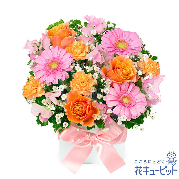 ■【1月の誕生花(スイートピー)】ピンクとオレンジのキューブアレンジメント アレンジメント/ワンサイド 7040 円(税込)スイートピーをはじめとするピンクとオレンジの花を使って、明るい色合いでまとめたアレンジメント。ボリュームたっぷりなシルエットなので、退職祝いや開店祝いなどのフォーマルなご用途でもお贈りいただけます。花器にピンクのリボンをあしらって、プレゼントボックスのように仕上げました。お誕生日に最適なプレゼント。花言葉にのせて誕生花を贈りましょう。スイートピーの花言葉は「優しい思い出」、「門出」など、新しいスタートをきる方にもぴったりのお花ですね。お届け先近くの花キューピットのお店から、メッセージカード付で直接お届けいたします。※商品価格にはご利用手数料990円(税込)が含まれております。※配達不能な区域がありますので必ずご確認ください。配達不能地域へのご注文についてはキャンセルとさせていただきます。【色合い】:ミックス【スタイル】:アレンジメント【主な花材】:ピンクスイートピー【サイズ】:高さ25×幅27×奥行20cm【こんなご用途に】:誕生日・お祝い・記念日・両親への感謝の気持ちご注文に関する注意事項※写真はイメージです。 地域・季節によって、一部花材・花器等が異なる場合がございます。商品価格にはご利用手数料990円(税込)が含まれております。※配達不能な区域がありますのでご確認ください。配達不能地域へのご注文についてはキャンセルとさせていただきます。※メッセージカードは無料にてお付けします。※メッセージカードにはお名前は入りません。必要な場合はメッセージ内にご記入ください。 『 無 料 メ ッ セ ー ジ ご 利 用 の 方 へ 』 ●「定型文をご利用の場合」 ・上記商品欄の【メッセージ】を選択 ●「フリー入力をご利用場合」※産直ギフトはご記入していただいても、対応できません。 ・メッセージの入力場所:注文確認画面内の備考欄にございます、メッセージ入力欄にて承ります。 ・メッセージの文字制限:差出人のお名前を含み30文字まで。絵文字、機種依存文字などの文字は使用できません。 ※フリー入力をご利用の場合、上記商品欄の【メッセージ】で選択されたメッセージは記載されませんお届け日について※ご購入商品、お支払い方法により詳細が異なりますのでご注意ください。 ※コンビニ前払いの場合は:入金期限日前迄にご入金ください。※コンビニ前払いの場合、お花のご手配は入金後となります。期日までにお支払いが確認できない場合は、キャンセル扱いとさせていただきます。カード決済エラーによる入金遅延もこれに準じます。 注文後に送付されます【注文確認メール】に記載のある、支払い期日までにご入金ください。お届け先へ事前に在宅確認の連絡をする場合があります。なお、連絡がつかない場合は、ご指定の日時にお届けができない場合がございます。■コンビニ前払い際の注意ご注文後に、お支払い受付番号を記載したメールを楽天市場からお送りいたします。お支払いの際にはお支払い受付番号が必要です。※お届け希望日前日を過ぎての入金の場合、入金期限内でもお届け日を変更させていただく場合がございます。予めご了承ください。