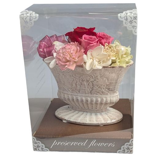 【ご購入前の重要な確認事項】いつもご利用いただき、誠にありがとうございます。いつも【vicsystore楽天市場店】をご利用いただき、誠にありがとうございます。 最近、商品の入数・数量・サイズなどのご注文内容に関する間違いが増えております。 お手数ではございますが、ご購入手続きの際には、入数・数量・サイズを今一度ご確認いただけますようお願いいたします。 ご注文から30分以上経過した場合、入数・数量・サイズ等の間違いによるキャンセルはお受けできません。 ご不明な点がある場合は、必ずご注文前にお問い合わせください。 🚚ご注文に関するご案内 最短でのお届けをご希望の方へ 日時指定をされない場合、最短での発送手配が可能です。お急ぎの場合は日時指定なしでのご注文をおすすめいたします。 営業所留めについて 営業所留めには対応しておりません。 誤った郵便番号や住所でご注文された場合、発送時に発生した費用や損失はお客様のご負担となりますのでご注意ください。 お支払い方法について コンビニ払い・銀行振込などの前払いの場合は、ご入金確認後に在庫を確保いたします。 そのため、ご入金のタイミングによっては欠品となる場合がございます。 ギフト対応について 誠に申し訳ございませんが、のし・ラッピング・メッセージカード等のギフト対応は行っておりません。 ご購入数量の上限について 当店ではすべての商品に購入上限を設けております。 上限を超える数量をご希望の場合は、ご購入前に必ずお問い合わせください。 キャンセルについて ご注文から30分を過ぎた場合、お客様都合によるキャンセルはお受けできません。 内容に不安がある場合は、ご注文前に必ずお問い合わせください。 サイズ:Φ10x11.2cm 素材:プリザーブドフラワー・ドライフラワー・アレンジ用スポンジ・ガラス・木製土台 お花の美しさを保つプリザーブドフラワーはお供え・お悔やみ花におすすめ 原産国:中国