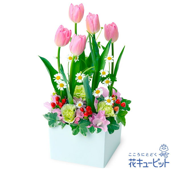 ■【チューリップ特集】ピンクチューリップのガーデンアレンジメント アレンジメント/オールラウンド 6490 円(税込)チューリップの伸びやかなシルエットが映える、春の庭をイメージしたアレンジメント。チューリップの魅力を存分に感じられる、心おどるような可愛らしいデザインです。春生まれの人の誕生日や、春のお祝いのプレゼントにおすすめです。世界中で愛されて続けているチューリップ。花言葉の「美しい瞳 恋の告白(赤)、新しい恋」。春の訪れが待ち遠しいこの季節に最適なフラワーギフトお届け先近くの花キューピットのお店から、メッセージカード付で直接お届けいたします。※商品価格にはご利用手数料990円(税込)が含まれております。※配達不能な区域がありますので必ずご確認ください。配達不能地域へのご注文についてはキャンセルとさせていただきます。【色合い】:ミックス【スタイル】:アレンジメント【主な花材】:ピンクチューリップ【サイズ】:高さ35×幅17×奥行17cm【こんなご用途に】:お誕生日・合格祝い・入学祝い・卒業祝い・就職祝い・異動、転勤祝い・退職祝い・歓送迎・新築祝いなどのお祝いご注文に関する注意事項※写真はイメージです。 地域・季節によって、一部花材・花器等が異なる場合がございます。商品価格にはご利用手数料990円(税込)が含まれております。※配達不能な区域がありますのでご確認ください。配達不能地域へのご注文についてはキャンセルとさせていただきます。※メッセージカードは無料にてお付けします。※メッセージカードにはお名前は入りません。必要な場合はメッセージ内にご記入ください。 『 無 料 メ ッ セ ー ジ ご 利 用 の 方 へ 』 ●「定型文をご利用の場合」 ・上記商品欄の【メッセージ】を選択 ●「フリー入力をご利用場合」※産直ギフトはご記入していただいても、対応できません。 ・メッセージの入力場所:注文確認画面内の備考欄にございます、メッセージ入力欄にて承ります。 ・メッセージの文字制限:差出人のお名前を含み30文字まで。絵文字、機種依存文字などの文字は使用できません。 ※フリー入力をご利用の場合、上記商品欄の【メッセージ】で選択されたメッセージは記載されませんお届け日について※ご購入商品、お支払い方法により詳細が異なりますのでご注意ください。 ※コンビニ前払いの場合は:入金期限日前迄にご入金ください。※コンビニ前払いの場合、お花のご手配は入金後となります。期日までにお支払いが確認できない場合は、キャンセル扱いとさせていただきます。カード決済エラーによる入金遅延もこれに準じます。 注文後に送付されます【注文確認メール】に記載のある、支払い期日までにご入金ください。お届け先へ事前に在宅確認の連絡をする場合があります。なお、連絡がつかない場合は、ご指定の日時にお届けができない場合がございます。■コンビニ前払い際の注意ご注文後に、お支払い受付番号を記載したメールを楽天市場からお送りいたします。お支払いの際にはお支払い受付番号が必要です。※お届け希望日前日を過ぎての入金の場合、入金期限内でもお届け日を変更させていただく場合がございます。予めご了承ください。