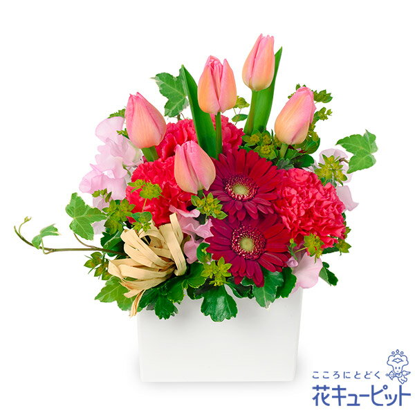 ■【バレンタイン フラワーバレンタイン】ピンクとレッドのキューブアレンジメント アレンジメント/オールラウンド 6490 円(税込)ピンクのチューリップが映える、まるで春の花畑のようなアレンジメント。赤とピンクのグラデーションが美しいフラワーギフトです。上品な色合いなので、目上の人へのプレゼントや、フォーマルなご用途にも最適です。2月14日はバレンタインデー。愛する人に想いを伝えるなら花キューピットのフラワーギフトお届け先近くの花キューピットのお店から、メッセージカード付で直接お届けいたします。※商品価格にはご利用手数料990円(税込)が含まれております。※配達不能な区域がありますので必ずご確認ください。配達不能地域へのご注文についてはキャンセルとさせていただきます。【色合い】:ミックス【スタイル】:アレンジメント【主な花材】:ピンクチューリップ【サイズ】:高さ27×幅22×奥行22cm【こんなご用途に】:ご注文に関する注意事項※写真はイメージです。 地域・季節によって、一部花材・花器等が異なる場合がございます。商品価格にはご利用手数料990円(税込)が含まれております。※配達不能な区域がありますのでご確認ください。配達不能地域へのご注文についてはキャンセルとさせていただきます。※メッセージカードは無料にてお付けします。※メッセージカードにはお名前は入りません。必要な場合はメッセージ内にご記入ください。 『 無 料 メ ッ セ ー ジ ご 利 用 の 方 へ 』 ●「定型文をご利用の場合」 ・上記商品欄の【メッセージ】を選択 ●「フリー入力をご利用場合」※産直ギフトはご記入していただいても、対応できません。 ・メッセージの入力場所:注文確認画面内の備考欄にございます、メッセージ入力欄にて承ります。 ・メッセージの文字制限:差出人のお名前を含み30文字まで。絵文字、機種依存文字などの文字は使用できません。 ※フリー入力をご利用の場合、上記商品欄の【メッセージ】で選択されたメッセージは記載されませんお届け日について※ご購入商品、お支払い方法により詳細が異なりますのでご注意ください。 ※コンビニ前払いの場合は:入金期限日前迄にご入金ください。※コンビニ前払いの場合、お花のご手配は入金後となります。期日までにお支払いが確認できない場合は、キャンセル扱いとさせていただきます。カード決済エラーによる入金遅延もこれに準じます。 注文後に送付されます【注文確認メール】に記載のある、支払い期日までにご入金ください。お届け先へ事前に在宅確認の連絡をする場合があります。なお、連絡がつかない場合は、ご指定の日時にお届けができない場合がございます。■コンビニ前払い際の注意ご注文後に、お支払い受付番号を記載したメールを楽天市場からお送りいたします。お支払いの際にはお支払い受付番号が必要です。※お届け希望日前日を過ぎての入金の場合、入金期限内でもお届け日を変更させていただく場合がございます。予めご了承ください。