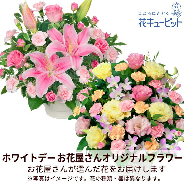 ■【ホワイトデー 花屋さんおすすめギフト】【花屋オリジナル】ホワイトデーのアレンジメント アレンジメント 11990 円(税込)お届け先近くのお花屋さんが心を込めて作る、オリジナルデザインのホワイトデーのフラワーギフトです。花の種類・器はお花屋さんにおまかせください。ホワイトデーに最適な花をお届けいたします。ホワイトデーには「ありがとう」を込めたフラワーギフトを贈りましょう。ロマンチックなお花のプレゼントが気持ちを届けてくれます。お届け先近くの花キューピットのお店から、メッセージカード付で直接お届けいたします。※商品価格にはご利用手数料990円(税込)が含まれております。※配達不能な区域がありますので必ずご確認ください。配達不能地域へのご注文についてはキャンセルとさせていただきます。【色合い】:ミックス【スタイル】:おまかせ【主な花材】:ミックス系メイン(ホワイトデー)【サイズ】:おまかせ【こんなご用途に】:ホワイトデー・バレンタインのお返し・感謝の気持ちご注文に関する注意事項※写真はイメージです。 地域・季節によって、一部花材・花器等が異なる場合がございます。商品価格にはご利用手数料990円(税込)が含まれております。※配達不能な区域がありますのでご確認ください。配達不能地域へのご注文についてはキャンセルとさせていただきます。※メッセージカードは無料にてお付けします。※メッセージカードにはお名前は入りません。必要な場合はメッセージ内にご記入ください。 『 無 料 メ ッ セ ー ジ ご 利 用 の 方 へ 』 ●「定型文をご利用の場合」 ・上記商品欄の【メッセージ】を選択 ●「フリー入力をご利用場合」※産直ギフトはご記入していただいても、対応できません。 ・メッセージの入力場所:注文確認画面内の備考欄にございます、メッセージ入力欄にて承ります。 ・メッセージの文字制限:差出人のお名前を含み30文字まで。絵文字、機種依存文字などの文字は使用できません。 ※フリー入力をご利用の場合、上記商品欄の【メッセージ】で選択されたメッセージは記載されませんお届け日について※ご購入商品、お支払い方法により詳細が異なりますのでご注意ください。 ※コンビニ前払いの場合は:入金期限日前迄にご入金ください。※コンビニ前払いの場合、お花のご手配は入金後となります。期日までにお支払いが確認できない場合は、キャンセル扱いとさせていただきます。カード決済エラーによる入金遅延もこれに準じます。 注文後に送付されます【注文確認メール】に記載のある、支払い期日までにご入金ください。お届け先へ事前に在宅確認の連絡をする場合があります。なお、連絡がつかない場合は、ご指定の日時にお届けができない場合がございます。■コンビニ前払い際の注意ご注文後に、お支払い受付番号を記載したメールを楽天市場からお送りいたします。お支払いの際にはお支払い受付番号が必要です。※お届け希望日前日を過ぎての入金の場合、入金期限内でもお届け日を変更させていただく場合がございます。予めご了承ください。