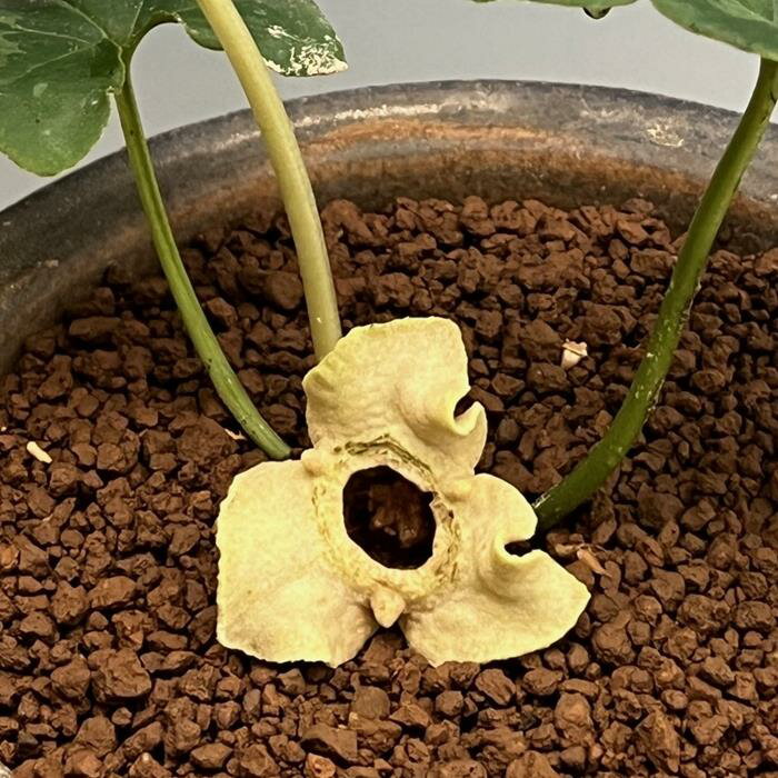 アケボノ×オナガ『桜姫』 神秘のカンアオイ オニ×オナガ『蛇竜』(じゃりゅう)現物個体の販売です。1枚目は見本品。2枚目が現物販売個体の画像です。お間違えないようお願いいたします。商品情報 オニカンアオイ×オナガカンアオイとの交配です。葉長8cm×葉幅5.5cmの花見込み個体です。 2025.11.10.撮影 1