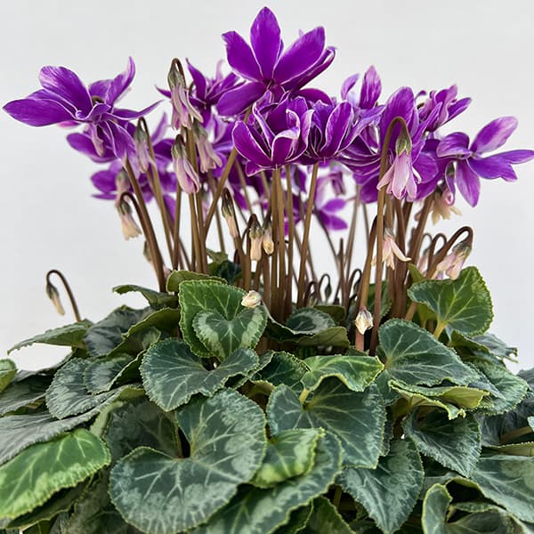 初売りセール さかもと園芸さんの自然開花株シクラメン:アンティラオ フォンシィー(シャワー系)5号鉢植え★入荷から日数が経ったためセール価格となりました。商品の状態は画像と異なる場合があります。★アンティラオは、さかもと園芸さん育種の最新シリーズ!咲き進んでいくとくすみ色へと変わっていく、シックで大人カラーのシクラメンです。【自然開花株】開花を早めるホルモン剤を使用せず、自然に開花するように育てた株です。無理に花を咲かせていないので、お届け時の花数は少なめですが、だんだん花が増え長い期間にわたってお楽しみいただけます。室内で管理できますが、晴れた日はなるべく戸外で日光にあてるようにすると、より長く花を咲かせることができます。鉢植えシクラメンの育て方:栽培適温は10〜20度です。室内の窓辺など、明るい場所置いてください。西日が当たる場所や、高温・朝夕に冷え込む場所は避けます。暖房の温風が当たるところも不適です。温度が高いと軟弱になりますので涼しい場所においてください。底面吸水鉢は、水が乾く前に貯水部に水を足します。普通鉢は、土の表面が乾いたら株の根元にたっぷり水をやります。球根や葉の付け根に水をかけないようにします。週に一回、薄めた液肥を、底面吸水タイプは貯水部に、普通鉢タイプは根元から、鉢底から出るまでたっぷりと与えます。花や葉が小さくなったら肥料不足です。リン酸、カリ分が多い液肥や置き肥を施してください。花色が褪せたら、花茎ごと抜き取ります。花茎をねじるようにして根元から抜き取ります。■お届け地域について ・北海道、東北、沖縄、離島など、冬期間凍結の恐れがある地域、配送日数のかかる地域へのお届けができません。 写真はイメージです。シクラメン:アンティラオ フォンシィー(シャワー系)5号鉢植えの栽培ガイド鉢植えシクラメンのお手入れ方法シクラメン特集