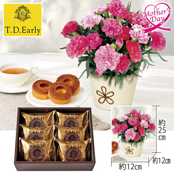 母の日 スイーツ プレゼント ギフト カーネーション 鉢植え スイーツ 花 カーネーション(ホットハート)とT.D.Earlyキャラメリゼバウム 型番:B40-1 メッセージカード 母の日ギフト 母の日2026 送料無料 贈答用 詰め合わせ お取り寄せ