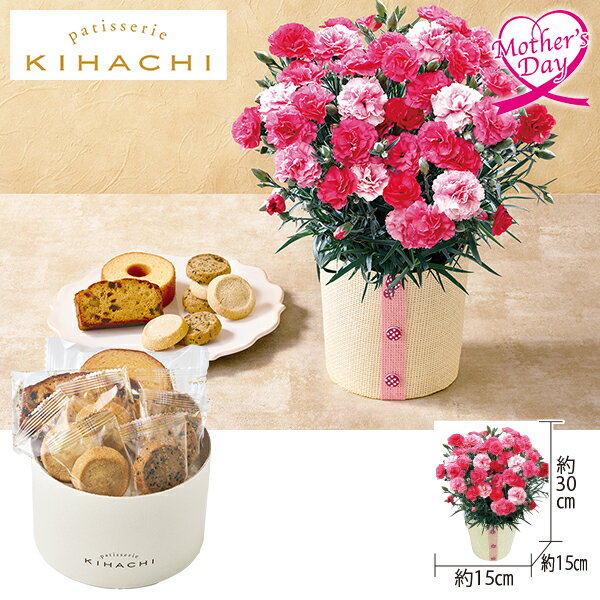 母の日 スイーツ プレゼント ギフト カーネーション 鉢植え スイーツ 花 カーネーション(さくらもなか)と「パティスリー キハチ」アソートBOX 型番:A40-1 メッセージカード 母の日ギフト 母の日2026 送料無料 贈答用 詰め合わせ お取り寄せ