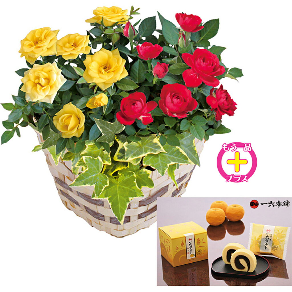 母の日ローズバスケットと一六タルトのセット(母26-220)