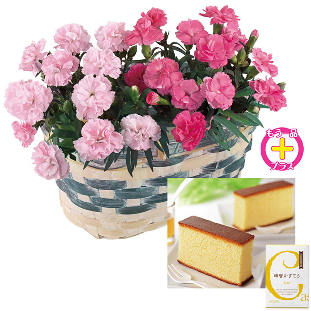 母の日カーネーションバスケットと蜂蜜かすてらのセット(母26-220)