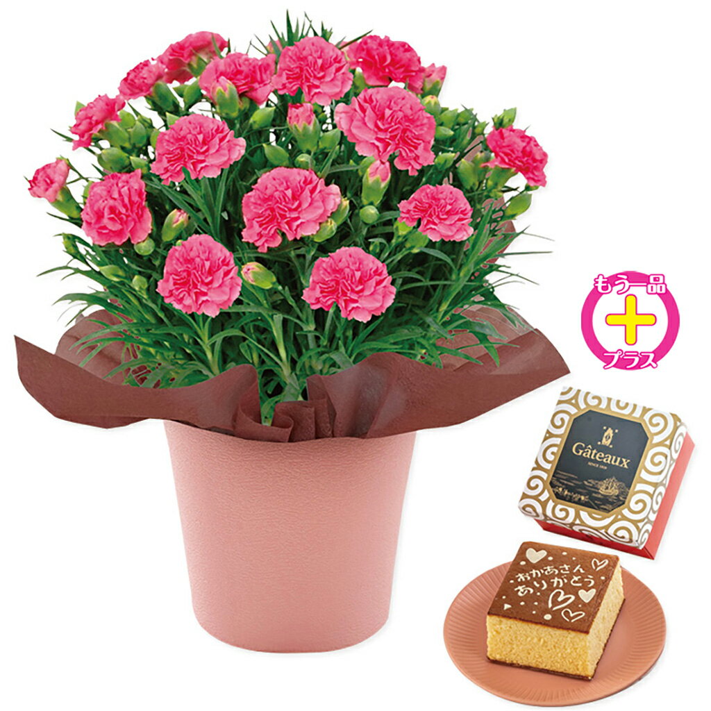 母の日カーネーションピンクと長崎堂「メッセージ入カステラ」のセット(母26-220)