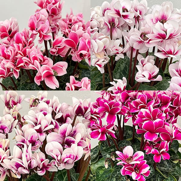 初売りセール 大栄花園さんシクラメンシクラメン:メルシー(旧パピヨン 八重咲き)4号鉢★入荷から日数が経ったためセール価格となりました。商品の状態は画像と異なる場合があります。★オリジナル品種を数多く作出し、またそのオリジナル品種を高品質な鉢花として生産・供給している千葉県の「大栄花園」さんのシクラメンです。まるでたくさんの蝶が飛んでいるような花姿。散らし咲きが特徴でとてもボリュームのあるシクラメンです。こちらのシクラメンは花を中央に寄せて仕立てておらず自然な花姿でご鑑賞頂くシクラメンでございますのでご注意ください。株により色幅があります。鉢植えシクラメンの育て方:栽培適温は10〜20度です。室内の窓辺など、明るい場所置いてください。西日が当たる場所や、高温・朝夕に冷え込む場所は避けます。暖房の温風が当たるところも不適です。温度が高いと軟弱になりますので涼しい場所においてください。底面吸水鉢は、水が乾く前に貯水部に水を足します。普通鉢は、土の表面が乾いたら株の根元にたっぷり水をやります。球根や葉の付け根に水をかけないようにします。週に一回、薄めた液肥を、底面吸水タイプは貯水部に、普通鉢タイプは根元から、鉢底から出るまでたっぷりと与えます。花や葉が小さくなったら肥料不足です。リン酸、カリ分が多い液肥や置き肥を施してください。花色が褪せたら、花茎ごと抜き取ります。花茎をねじるようにして根元から抜き取ります。■お届け地域について ・北海道、東北、沖縄、離島など、冬期間凍結の恐れがある地域、配送日数のかかる地域へのお届けができません。 ※お届け品種は個体差があります。写真はイメージです。シクラメン:メルシー(旧パピヨン 八重咲き)4号鉢の栽培ガイド鉢植えシクラメンのお手入れ方法シクラメン特集大栄花園さんのシクラメン
