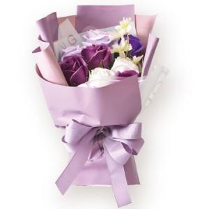 ポピー名古屋(Poppy Nagoya) ソープフラワー 4カラーローズスタンドブーケ(24個アソート)カカオ/PK/PU/YE 色指定可 (SH-044PU)【入数:24】