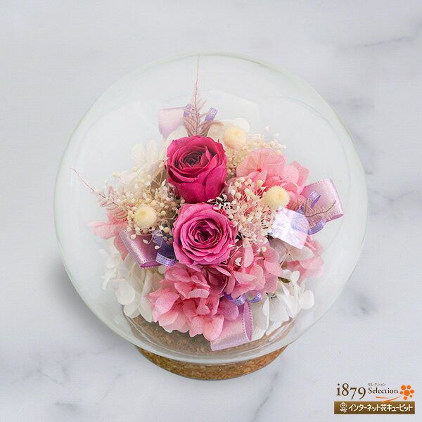 【母の日プリザーブドフラワー】花キューピット【日付指定可】 2026年 飾り花 誕生日 お祝い ピンクバラのプリザーブドフラワーガラスドームmt30-723068