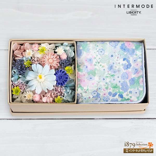 【母の日プリザーブドフラワー】花キューピット【日付指定可】 2026年 飾り花 誕生日 お祝い プリザーブドフラワーボックスと【リバティプリント】タオルハンカチmt30-723069