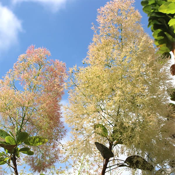 綿菓子のような花が人気の煙の木 花木の苗木花木 庭木の苗/スモークツリー:パステルシュシュ5号ポット★入荷から日数が経ったためセール価格となりました。商品の状態は画像と異なる場合があります。★ふわっとした花を咲かせる煙の木、パステルシュシュはスモークツリーの新品種で明るいピンクにグラデーション状に黄色やグリーンが混じる美しい花色です。さらに二季咲性が強く、晩春に加えて秋に咲く花はやや密度は薄めですが9月頃にもよく咲いてくれます。花の色も条件・時期により変化に富み、様々な色合いが楽しめます。タイプ:ウルシ科コティヌス属の耐寒性落葉花木栽培適地:北海道南部以南樹高:2〜3m植え付け最適期:11月〜3月(落葉期が最適ですが、ポット植えの苗の場合は真夏を除きほぼ年間を通して植え付けできます)開花期:5〜6月日照:日向むき栽培方法:日当たりと水はけのよい場所を好みます。根が浅く倒れやすいので、庭植えの場合は強い風のあたる場所を避けて植えてください。耐寒性・耐暑性は強いのですが、過湿には弱いので、鉢植えの場合は鉢土の表面が乾いてからたっぷり水やりするようにし、水切れに気をつけて管理してください。花後と早春に緩効性肥料を施してください。春の花を切花で使うとそこから新芽が出て秋の花が咲いてくれます。5号(直径15cm)ポット植え、樹高約30〜40cmです。樹高や樹形は入荷時期により変動する場合があります。夏以降のお届けは、葉が見苦しい状態の場合があります。また、冬季は落葉状態でのお届けとなります。写真は成長時のイメージです。※苗のラベルは既存の他品種の定型ラベルを流用している場合があります。